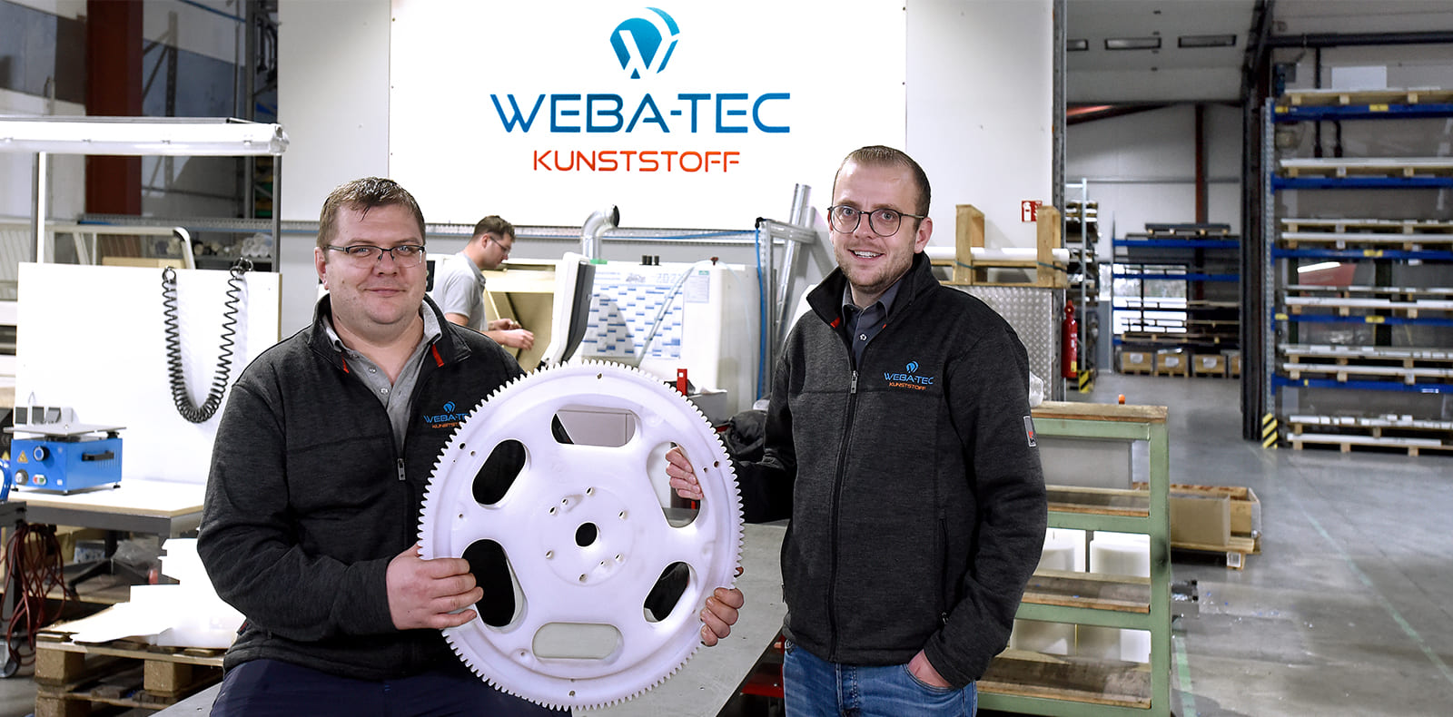 Ganz nach dem Motto: „Zuverlässig, fair und schnell“ zeichnet sich WEBA-TEC Kunststoff GmbH als mitdenkender Dienstleister mit einer erstklassigen Servicequalität aus. Eine persönliche Beratung, schnelle Lieferzeiten und ein sehr umfangreicher Vorrat an erforderlichen Rohstoffen sind selbstverständlich. Zudem liefert die WEBA-TEC Kunststoff GmbH auch bei sehr komplexen und anspruchsvollen Fertigteilen, eine hervorragende Qualität. Dies liegt sicherlich auch an dem perfekt abgestimmten Zusammenspiel zwischen der eigenen CAD/CAM-Programmierung und einem SAP basierten ERP-System. Hier greifen digitale Prozesse perfekt ineinander. „Wir fertigen die Bauteile so, dass die gewünschte Geometrie exakt realisiert wird. Die Kunststoffteile konfektionieren wir ganz nach den Vorstellungen und Anforderungen unserer Kunden.“ Das Unternehmen fertigt die Kundenaufträge in allen gewünschten Stückzahlen – von Einzelteilen bis hin zu Großserien.