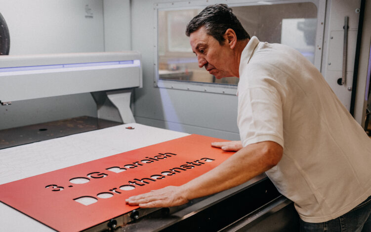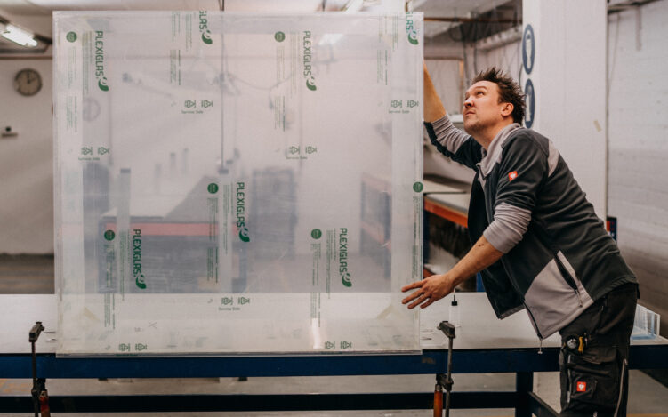 „Wir haben in dieser Zeit zahllose Zuschnitte für Kunden gemacht und an viele kleinere Händler aus der Region Platten-Ware, meist vier, fünf oder sechs Millimeter Acrylglas oder andere farblose Kunststoffe, zur Weiterverarbeitung geliefert“, sagt die Geschäftsführerin und ergänzt: „Unser Hauptlieferant ist der deutsche Hersteller von original PLEXIGLAS®, die Firma Röhm. Das Unternehmen konnte die Produktion gar nicht so schnell ankurbeln, wie das Material coronabedingt vom Markt ‚abgesaugt‘ wurde. Und dieser Zustand betraf weltweit alle Hersteller, weshalb die Belieferung von Kunden teilweise kontingentiert wurde und sich die Lieferzeiten verlängerten.“