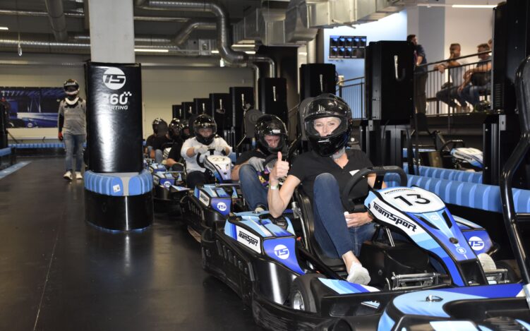 In Mönchengladbach betreibt TeamSport E-Karting seit 2021 NRWs erste Premium-Elektro-Kartbahn über zwei Ebenen. Hier wird den Besuchern ein ganz spezielles Kartsport-Erlebnis geboten, in doppelter Hinsicht: Der rund 500 Meter lange Rennparcours führt mit Rampen über zwei Etagen und die Besucher sind hier nicht mit herkömmlichen Karts mit Verbrennungsmotoren unterwegs, sondern mit 48 elektrisch angetriebenen Karts. Da bis zu 16 Personen parallel auf die Strecke gehen können, entfallen auch bei größeren Gruppen lange Wartezeiten, bis alle einmal drangekommen sind. Der Unterschied zwischen konventionell benzinbetriebenen und den bei TeamSport E-Karting angebotenen E-Karts fällt schon beim Betreten der Halle auf: Es fehlt etwas – und zwar die in anderen Anlagen übliche Geräusch- und Geruchsbelästigung. Stattdessen rasen die Fahrzeuge surrend über die Piste, nur das in den Kurven markig klingende Quietschen der Reifen ist zu vernehmen. Ein besonderes Erlebnis.