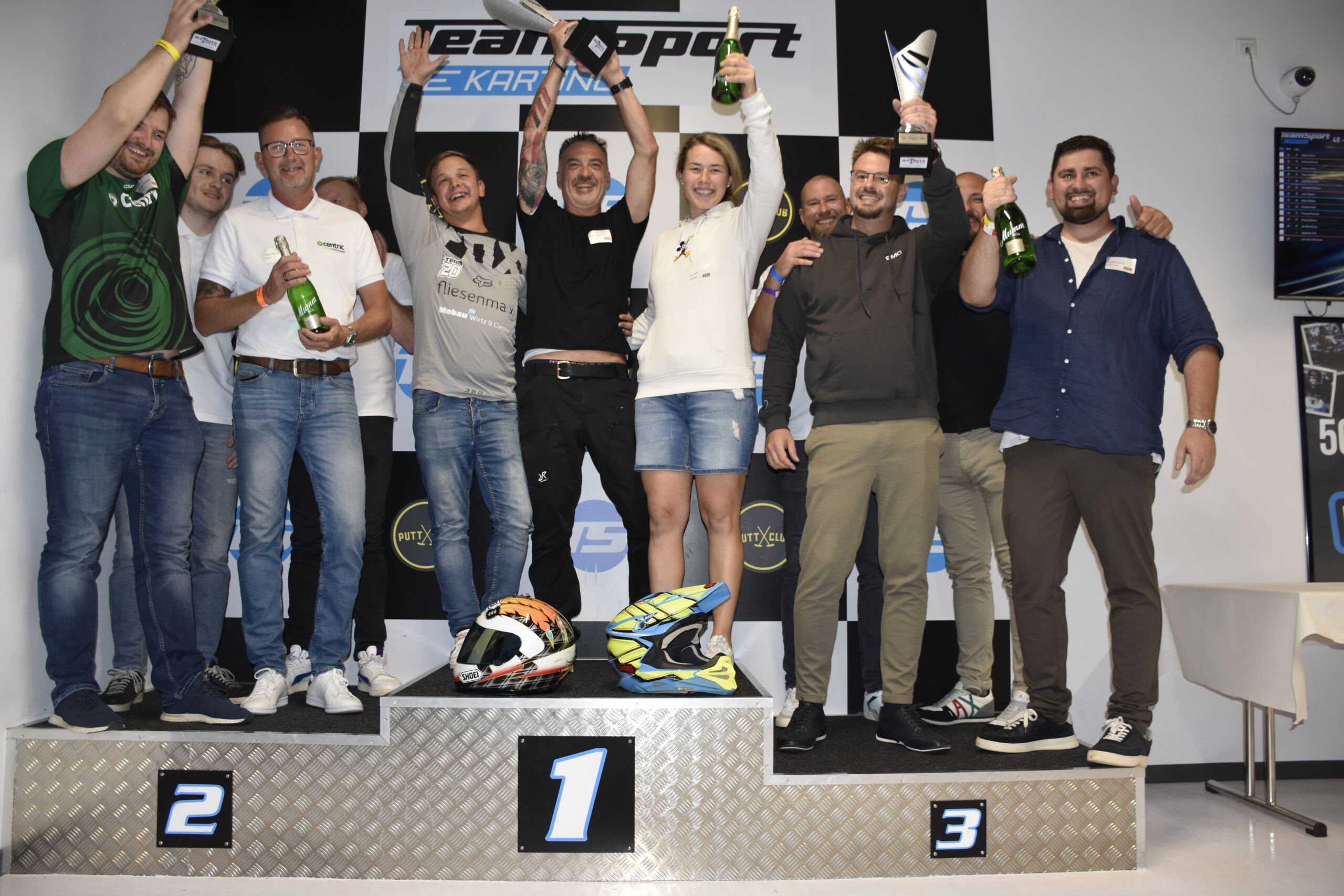 Rund 70 Teilnehmer, verteilt auf 13 Teams mit drei bis sechs Fahrern, bildeten das Rennen. Wir müssen neidlos zugeben, dass die teilnehmenden Unternehmen tolle Fahrer an den Start gebracht haben, die beeindruckende Zeiten gefahren sind. Am Ende konnte das Team von Outsite Media das Kopf-an-Kopf-Rennen mit dem Team von Centric-IT um Platz 1 für sich entscheiden. Auf Platz 3 landete das Team von SMC SteinMart.