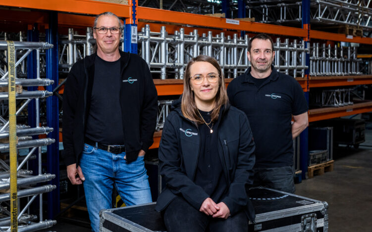 „Wir bieten unseren Kunden alles aus einer Hand, denn wir verstehen uns als Veranstaltungsdienstleister, der das komplexe Anforderungsspektrum eines Events abdecken kann“, fasst Geschäftsführerin Melanie Schobel die Firmenphilosophie zusammen. Gemeinsam mit Jörg Bettray leitet sie das Unternehmen, unterstützt von Gesellschafter und Firmengründer Dirk Schmidt-Enzmann, der sich seit Ende 2021 langsam aus dem operativen Geschäft zurückzieht. Melanie Schobel: „Seit seiner Gründung legt Media Spectrum großen Wert darauf, alle Projekte ganzheitlich für unsere Kunden zu planen und zu realisieren und aus jedem technischen Gewerk auf technisches Fachpersonal zurückzugreifen. Unsere Kunden können sicher sein, dass jeder Auftrag – egal welche Größenordnung oder welchen Umfang er hat – von Fachkräften betreut wird, die für eine allumfassende Abwicklung einer Veranstaltung verantwortlich sind. Wir verstehen uns als Übersetzer kreativer Eventideen in technische Machbarkeit. Das zeichnet uns seit 40 Jahren aus.“ Ob eine Veranstaltung in der Region oder weltweit geplant ist: Es ist immer mindestens ein(e) Projektleiter*in als fester Ansprechpartner für den Kunden vor Ort. Dahinter stehen Fachplaner*innen für die einzelnen Gewerke eines Events wie Beleuchtung, Beschallung, Rigging oder Medientechnik, die in Zusammenarbeit mit der Projektleitung die technische Machbarkeit der Kundenwünsche realisieren. Schobel: „Events haben einen festen Zeitplan, bei dem alles on time funktionieren muss. Damit alles reibungslos vorbereitet und durchgeführt wird, ist viel Personal nötig.“