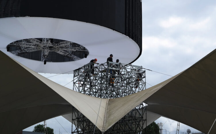 Zum Leistungs- und Angebotsspektrum des Willicher Unternehmens gehört auch der Bereich Bühnenbau und Sonderkonstruktionen, beispielsweise für Musikveranstaltungen und Festivals. „Das hängt vor allem mit unserer Firmenhistorie zusammen“, erklärt Melanie Schobel. Auch das Haldern Pop Festival feiert in diesem Jahr sein 40-jähriges Bestehen. Media Spectrum blickt als technischer Dienstleister besonders stolz auf eine langjährige partnerschaftliche Zusammenarbeit zurück, aus der sich in den ersten Jahren nach Firmengründung die Spezialisierung im Bereich Bühnen- und Audiotechnik ergab. Schobel: „Wir setzen grundsätzlich auf langfristige, partnerschaftliche, vertrauensvolle Zusammenarbeit und konnten das bereits bei einem breiten Kundenstamm erreichen.“ Ein Aspekt ist Melanie Schobel und Jörg Bettray sowie dem gesamten Team von Media Spectrum bei der Umsetzung aller Projekte besonders wichtig – und deswegen sind Präsenz-Eventformate trotz der voranschreitenden Digitalisierung auch weiterhin immens wichtig für den Kommunikationsmix ihrer Kunden: „So groß die technischen Möglichkeiten auch sind – nichts kann das persönliche Zusammentreffen von Menschen ersetzen. Nur im echten Beisammensein kommen die Emotionen ins Spiel, die für die Unternehmenserfolge unserer Kunden so wichtig sind.“