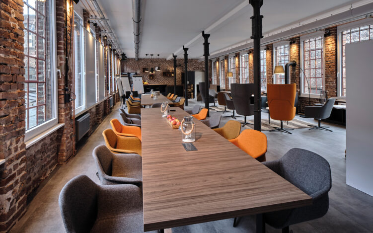 Stolze 760 Quadratmeter stehen für kreative, für inspirierende und teambildende Zusammenkünfte, für Weiterbildung, Konferenzen und für Firmenfeiern zur Verfügung. Es gibt acht vermietbare Räume und über das ganze Gebäude verteilt Büros für acht bis 80 Personen. Dazu kommt der 200 Quadratmeter große und vielfältig bespielbare Innenhof. „Wir haben da eine Firma, die möchte mit 200 Leuten zu uns kommen. Aufgeteilt in Arbeitsgruppen und umsorgt von unserem Partner, dem Romantik Hotel Neuhaus. Hier wurde ein ganz eigenes Gastro-Konzept entwickelt. Es geht nicht um Buffets oder Tellergerichte, sondern die Kommunikation steht im Mittelpunkt. Es kann gemeinsames Kochen mit einem Profi geben, ein Tasting oder ein Grill-Event … Dabei sind natürlich alle Getränke fair gehandelt und auch die Speisen vorrangig regional und in Bioqualität. Wir wollen Angebote machen, die nachhaltig und durchaus auch abseits vom Mainstream sind“, so Sven Wiedemeyer. Dabei setzt man ganz bewusst auch auf eine besondere Möbel-Linie. „Bene Pixel“ ist gewissermaßen LEGO für Erwachsene. „PIXEL sieht zwar aus wie eine Box, ist aber viel mehr als das. PIXEL ist ein Tisch, eine Bank, ein Hocker, eine Tribüne oder alles gleichzeitig“, so der Hersteller. In Iserlohn, wo man besonders viele dieser multipel einsetzbaren Boxen im Einsatz hat, lässt sich so schnell das optimale Arbeits-Setting für jeden Zweck erschaffen.