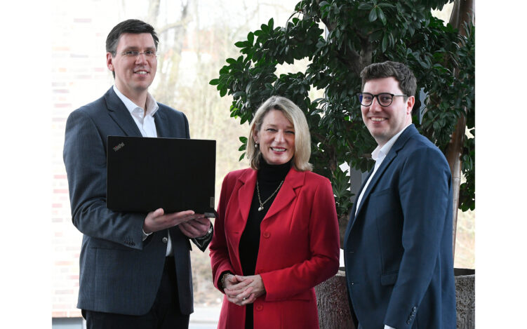 Dagmar Marx (head of tax operations und Steuerberaterin), Steffen Laufer (head of culture, people and process) und Henrik Trockel (head of legal operations und Rechtsanwalt) (v.l.) (© Gerd Lorenzen)