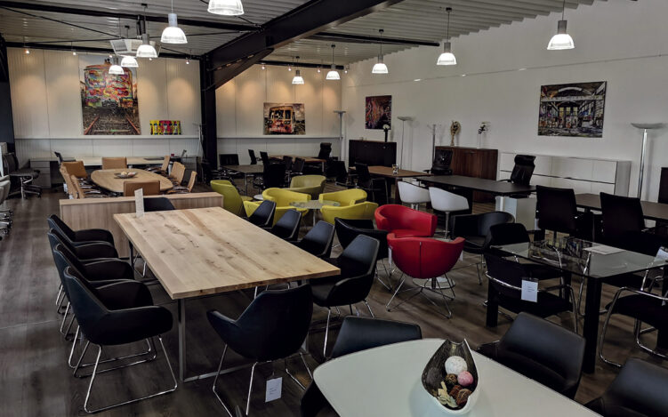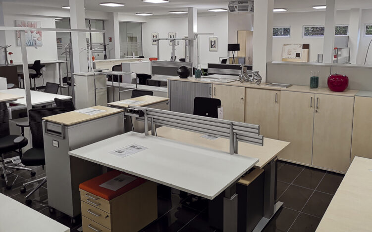 Neue und gebrauchte Büroeinrichtungen werden ansprechend präsentiert
