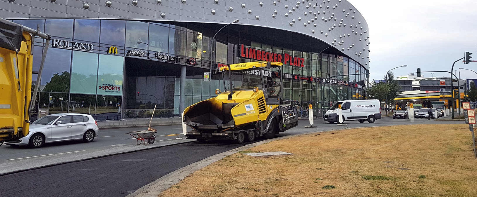 Gerade in einer Stadt wie Essen fallen permanent Sanierungsaufgaben im Straßennetz an. Darauf hat sich die Straßenbau-Union spezialisiert. „Das heißt aber nicht, dass wir nur für die Kommune arbeiten“, betont Thorsten Potysch. „Wir sind zu 60 Prozent für die öffentliche Hand tätig. Dann gibt es die privat-öffentlichen Auftraggeber, wie z.B. die Ruhrbahn, für die wir im Gleisbereich tätig sind, oder diverse Stadtwerke, für die wir nach Straßenaufbrüchen die Oberfläche wiederherstellen. Im privaten Bereich pflastern und asphaltieren wir für Firmen und Grundstücksbesitzer Zufahrten, Höfe oder Parkplätze.“ Die Kunden kommen aus dem Großraum Essen. „In dieser Region sehen wir auch unseren Schwerpunkt“, so Potysch. „Hier kennen wir Betriebs- und Logistikwege und hier sitzen unsere Lieferanten.“ Die Firma hat durch die Qualität ihrer Arbeit und ihre Flexibilität einen guten Ruf bei den Auftraggebern. „Unsere Arbeiten halten lange“, freut sich der Geschäftsführer. „Auf der Altenessener Straße haben wir vor einigen Jahren 5.600 Quadratmeter Straße umgelegt. Das hält mittlerweile länger als der ursprüngliche Straßenbelag. Am Porscheplatz haben wir einen halbstarren Deckenbelag verbaut. Der hält nun schon seit 2002, obwohl er durch die dort haltenden Busse täglich stark belastet wird.“
