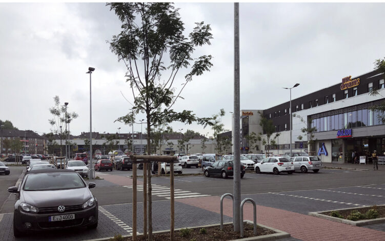 Bei dem Neubau eines Fachmarktzentrums mit angeschlossenem Hotel an der Altendorfer Straße in Essen verantwortete AKS den Kanalbau und die Errichtung der Außenanlagen