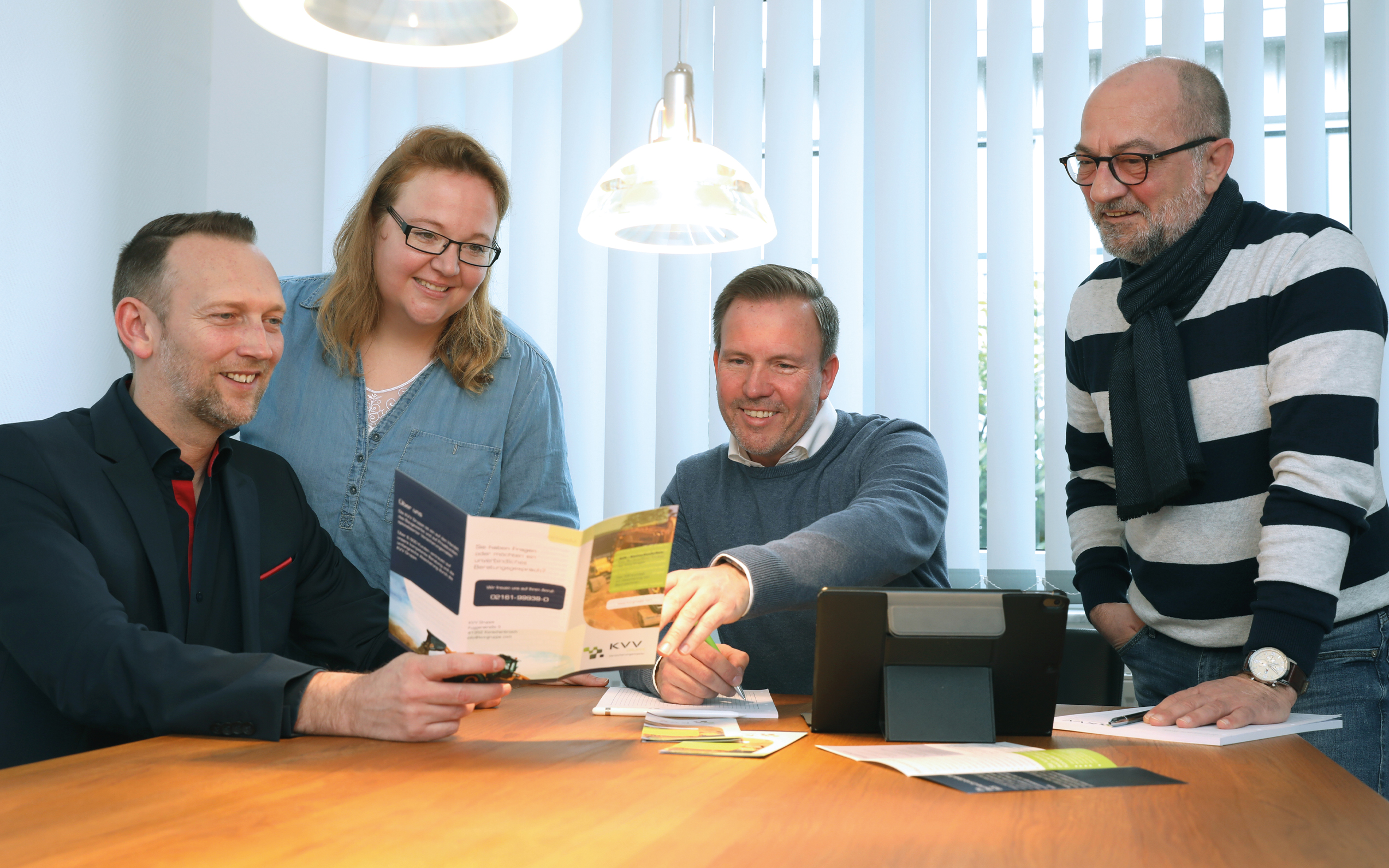 Die Geschäftsführer Marcus Kemper (li.) und Marc Hoverath (Mitte) mit Ivonne Sieber (Buchhaltung / Abrechnungswesen) und Innendienstleiter Udo Hörnke (© Detlef Ilgner) | Daniel Boss