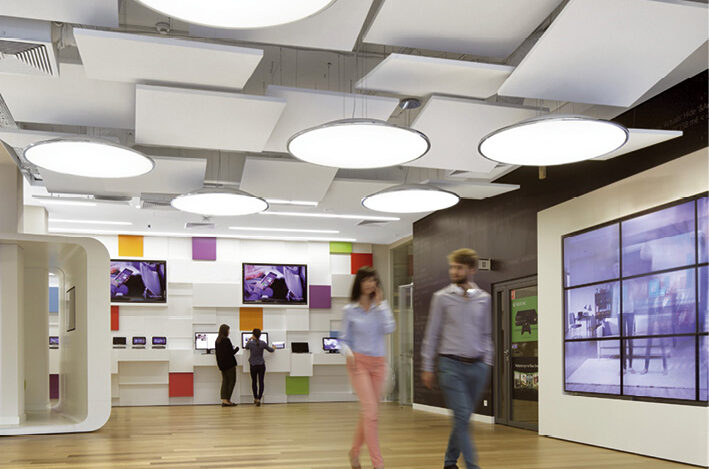 Ecophon bietet spezielle Deckensegel für eine ästhetische Raumakustik (Foto: ©Ecophon)
