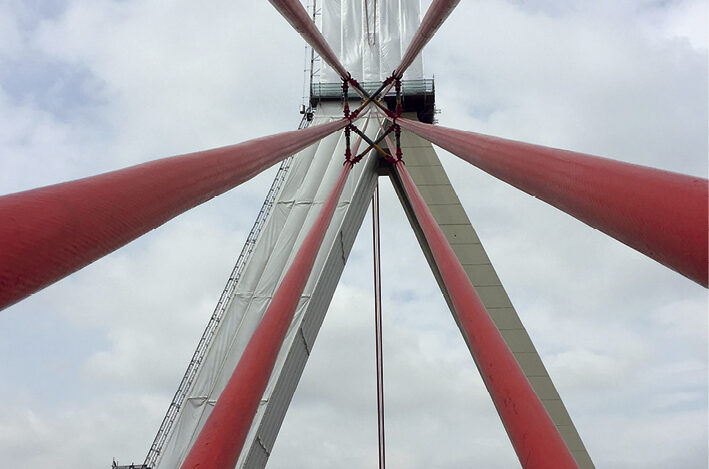 „Rund ein Viertel unseres Geschäfts besteht aus der Sanierung von Industriebauten“, berichtet Stahl. „Konkret sind das beispielsweise Fassaden von Verwaltungs- und Produktionsgebäuden oder Siloanlagen aus Beton. Stählerne Industriebauten können zum Beispiel Gasometer sein.“ Viele dieser Gebäude wurden während des Wirtschaftswunders in den 1950er und 60er Jahren erbaut und sind nun in die Jahre gekommen. Neben zahlreichen anderen Projekten waren die Essener Sanierungsspezialisten in jüngster Vergangenheit an der Sanierung der Fleher Brücke in Düsseldorf beteiligt. Es galt Abplatzungen, Hohlstellen, Risse und eine teilweise freiliegende Bewehrungen zu sanieren. „Hier haben wir uns um die Betonsanierung am Brückenpylon gekümmert“, erzählt Heiner Stahl. „Weitere Bauwerke, bei denen wir den Beton saniert haben, sind neben vielen anderen die Tribüne des Signal Iduna Park (BVB-Stadion) in Dortmund und der Fernsehturm in Wesel. In beiden Fällen konnten wir unsere Arbeiten termintreu abschließen“, fährt der Geschäftsführer fort. Besonders die Stadionsanierung verlangte eine präzise Planung. Die Arbeiten mussten aufgrund der Größe der Immobilie in Abschnitten durchgeführt werden und natürlich jeweils zu Beginn der neuen Saison abgeschlossen sein. Stahl betont: „Gegenwärtig liegt unser Tätigkeitsschwerpunkt bei Parkhäusern und Tiefgaragen.“ Dabei kommen auch moderne und innovative Schutzsysteme wie KKS-B zum Einsatz.
