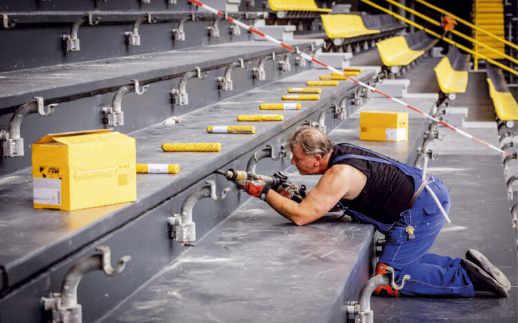 Sanierung des Betons an der Tribüne des Signal Iduna Parks in Dortmund