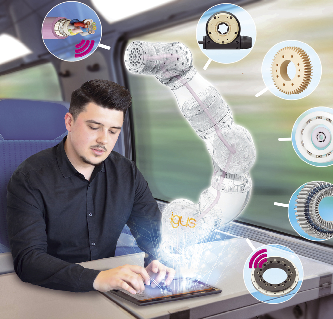 Auf dem Tablet unterwegs online konfigurierbar, als langlebiges Sonderteil 3D-gedruckt oder mit smarter Intelligenz ausgestattet – Motion Plastics entwickeln sich immer mehr zu Hightech-Komponenten. Diese Entwicklung zeigt Igus auf der Hannover Messe mit 120 Neuheiten – vom intelligenten Gleitlager bis hin zur weltersten Online-Plattform, die Anbieter und Anwender von kostengünstiger Robotik zusammenbringt. Mit der Kerntechnologie „Motion Plastics – Kunststoffe für Bewegung“ wagt sich Igus jedes Jahr in neue Bereiche der Industrie: 3D-Druck für Verschleißteile mit online kalkulierbarer Lebensdauer, intelligente „Smart Plastics“, Energieketten mit 1.000 Metern Verfahrweg oder schmierfreie Polymerkugellager mit zehnfach höherer Laufzeit. Und das mit Erfolg, denn Hochleistungskunststoffe für die Bewegung bleiben weltweit stark nachgefragt. So konnte Igus seinen Umsatz 2018 um 8,5 Prozent auf 748 Millionen Euro steigern. Vom Gesamtumsatz wurden 53 Prozent in Europa, 31 Prozent in Asien und 16 Prozent in Amerika und Afrika erwirtschaftet. Die Mitarbeiterzahl stieg auf 4.150. Igus wächst rein organisch und erschließt sich kontinuierlich neue Märkte wie die Bühnentechnik oder Solarindustrie. Am Hauptstandort in Köln-Porz-Lind herrscht Start-up-Elan. „Durch agile Arbeitsmethoden und offene Strukturen sind wir in der Lage, neue Motion-Plastics-Ideen schnell in Sprint-Teams umzusetzen“, stellt Geschäftsführer Frank Blase heraus. „Wir probieren aus, machen neu, verbessern, bis der Anwender genau das Produkt erhält, das ihn weiter nach vorne bringt.“ Ein Resultat dieser Dynamik sind die 120 Neuheiten, die der Hersteller auf der Hannover Messe präsentiert. Dort zeigt sich, dass Kunststoff-Maschinenelemente längst zu Hightech-Komponenten geworden sind. So nutzt das Unternehmen die Chancen der Digitalisierung und präsentiert Gleitlager, die mit smarter Intelligenz ausgestattet werden können.