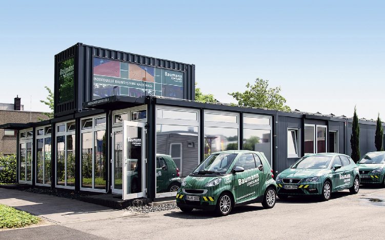 Baumann Container-Musterausstellung für mobile Raumlösungen am Standort Bonn