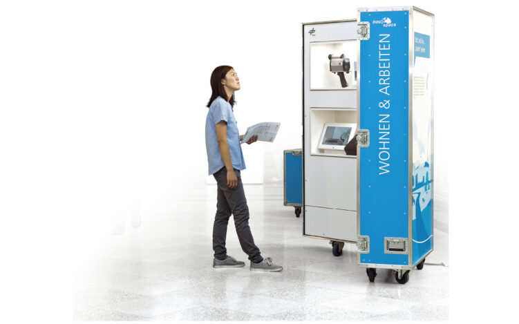 Form follows function. Medium auch. Die INNOspaceExpo „ALL.TÄGLICH!“ des Deutschen Zentrums für Luft- und Raumfahrt hat schon über 200.000 Menschen erklärt, warum Raumfahrt für alle wichtig ist. So geht Ausstellung 4.0, mobil, selbsterklärend, interaktiv: 27 Info- und Exponat-Cases, reinrollen, aufklappen, plug, play!