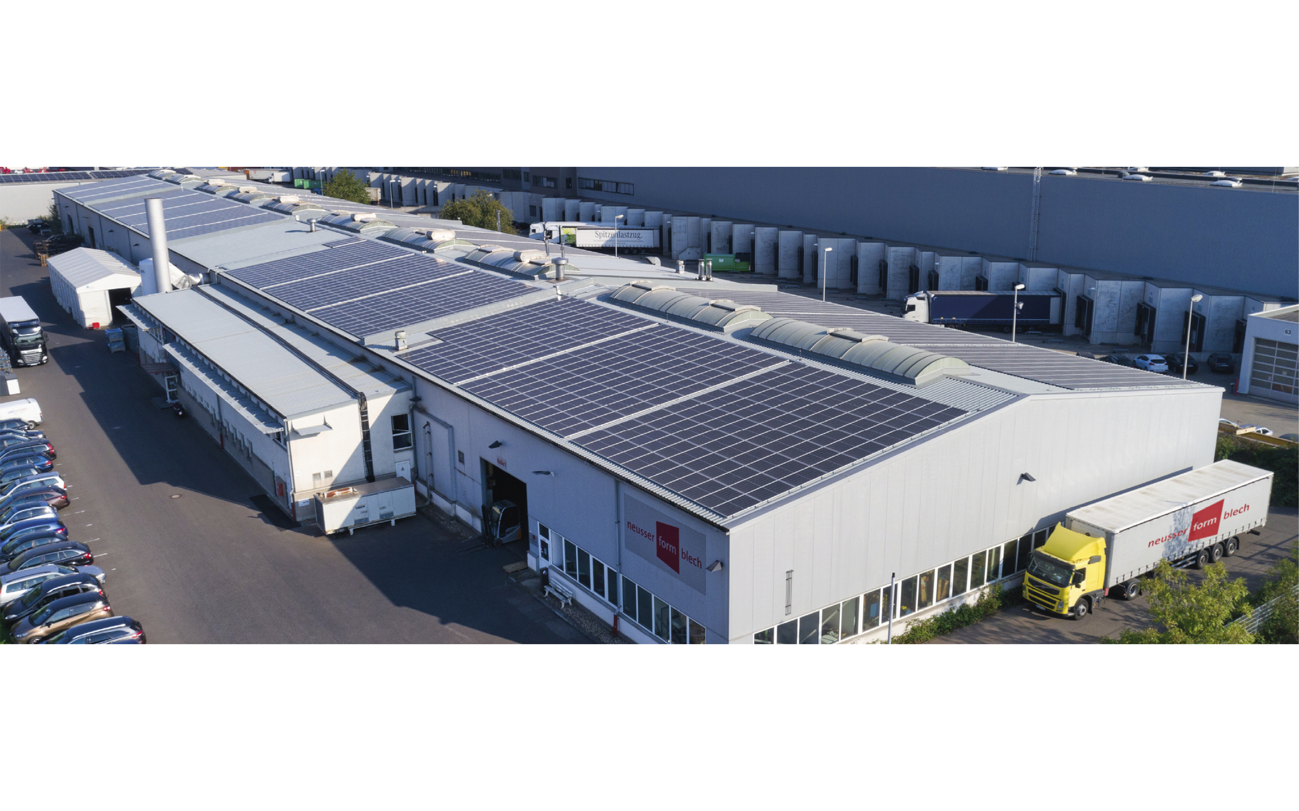 Über 4.000 Quadratmeter Solarzellen erzeugen eine Leistung von rund 750 kWp auf dem Dach der neusser formblech GmbH