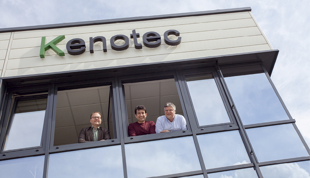 Umgezogen aus dem Gewerbegebiet in Spich an der Brüsseler Straße, produziert die Kenotec GmbH seit Sommer 2017 am neuen Standort oberhalb des Industriestadtparks. Von den insgesamt 1.800 Quadratmetern entfallen allein auf die Produktion 800 Quadratmeter. Dort stellt Kenotec extrudierte Weich-PVC-Streifen, Folien und Platten her. Hauptgeschäft sind sogenannte „Streifenvorhänge“, wie sie in Halleneinfahrten oder Kühlhäusern zu finden sind. Alle Standardrezepturen für das glasklare Weich-PVC sind geruchsoptimiert und verursachen in engen, schlecht klimatisierten Räumen keine Geruchsbelästigung. Darüber hinaus stellen die insgesamt 16 Mitarbeiter im dreischichtigen Betrieb Staubfang- und Antirutschmaterialien her sowie Gleitfolien, aber auch extrudierten Kork oder sogar Materialien mit Lebensmittelzulassungen oder mit fluoreszierenden Effekten. Die Geschäftsführer Siegfried Probst und Kiriakos Kovousiadis freuen sich über den neuen Standort: „Wir haben hier optimale Arbeitsbedingungen, sowohl in der Produktion als auch mit unserem neuen Lager. Jetzt müssen wir die Verwaltungsräumlichkeiten noch optimieren und den Eingangsbereich etwas aufhübschen.“ Das höre sich spannend an, meint Wirtschaftsförderer Thomas Zacharias: „Schon jetzt verbreiten die eigens aus Griechenland importierten Fliesen eine mediterrane Atmosphäre. Aber wir freuen uns sehr, dass wir einem weiteren Troisdorfer Unternehmen Entwicklungspotenzial im Stadtgebiet anbieten konnten und dies auch angenommen wurde. Das spricht eindeutig für den Standort.“