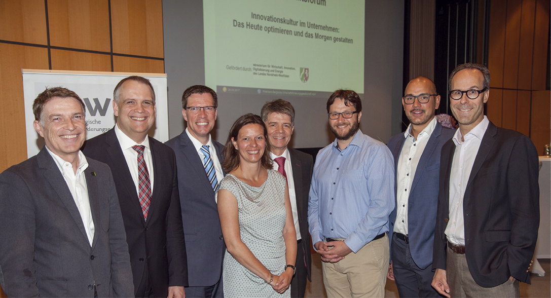 „Neue technologische und gesellschaftliche Entwicklungen werden zu Veränderungen in der Wirtschaft führen. Zum Erhalt ihrer Innovations- und Wettbewerbsfähigkeit müssen sich die Unternehmen mit diesen Entwicklungen auseinandersetzen und neue Antworten geben sowie Lösungen entwickeln“, weiß RBW-Geschäftsführer Volker Suermann. Innovationen sowie deren Entwicklung und Umsetzung in Unternehmen waren das Thema des Wirtschaftsforums der Rheinisch-Bergischen Wirtschaftsförderungsgesellschaft. Rund 100 Vertreter aus Unternehmen, Organisationen und Politik waren gekommen, um sich von der RBW die Bedeutung von Innovationen für Technologien, Produkte und Dienstleistungen aufzeigen zu lassen. Warum sich etablierte Unternehmen mit Innovationen oft so schwertun, wusste Professor Dr. Frank Piller vom Lehrstuhl Technologie- und Innovationsmanagement der RWTH Aachen, der als Gastreferent eingeladen war: Der Fokus auf optimierte Entwicklungsprozesse und die Minimierung der Entwicklungszeit führten zu einer hohen Risiko-Aversion. „Es werden die Innovationsprojekte gefördert, die ‚sicher‘ erscheinen, nicht aber die, die wirklich innovativ sind und im Markt Differenzierung bieten.“ Als Gegenmittel empfiehlt er sogenannte agile Innovationsprozesse, die experimentelles, zielgerichtetes Lernen und „Ausprobieren“ fördern. Denn Innovation bedeute, Ideen auch am Markt umzusetzen. Anschließend berichteten Firmen aus der Region über ihre Erfahrungen in Sachen Innovation: So hat das noch junge Unternehmen zeitgeist digital eine Innovationsplattform für den Mittelstand entwickelt. Tente Rollen hat bereits eine lange Erfahrung mit dem Innovationsmanagement und in den letzten zwei Jahren die Strategie verändert. Joke Technology musste wiederum auf neue Entwicklungen innovativ reagieren.