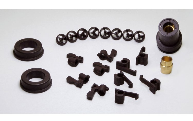 Eine Auswahl von im Magnetspritzguss produzierten Kunststoffteilen (Foto: Kimberly Wittlieb)