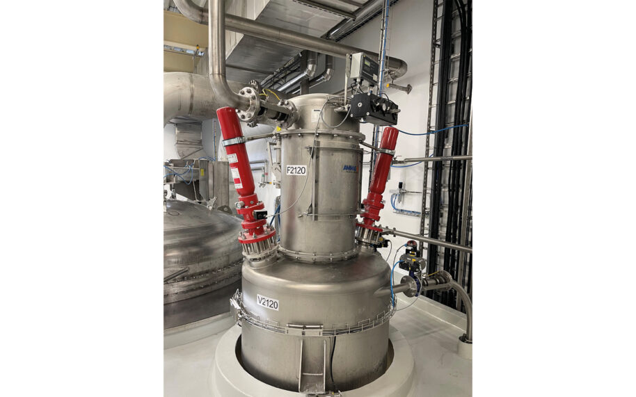 Explosionsunterdrückungsanlage gegen Staubexplosionen in einem Produktionsprozess