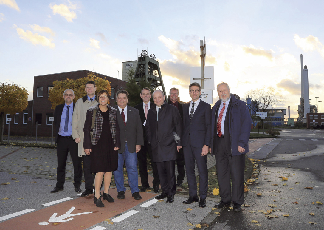 Das geplante Gewerbe- und Industriegebiet „gate.ruhr“ in Marl ist von zentraler Bedeutung für die wirtschaftliche Entwicklung der Emscher-Lippe-Region, ist man bei der Industrie- und Handelskammer (IHK) Nord Westfalen überzeugt. „gate.ruhr ist für uns von höchstem Interesse und ein sehr wichtiger Beitrag, um den herrschenden Flächenmangel zu überbrücken“, sagte IHK-Präsident Dr. Benedikt Hüffer im November 2018 bei seinem Besuch auf dem Areal der ehemaligen Schachtanlage Auguste Victoria 3/7. Mehr noch: „Zusammen mit newPark in Datteln und Waltrop sowie dem Projekt Freiheit Emscher in Bottrop und Essen eröffnet gate.ruhr der Emscher-Lippe-Region endlich die Chance, wirtschaftlich gegenüber angrenzenden Regionen aufzuholen“, zeigte sich Hüffer überzeugt. Er unterstrich: „Ausreichend Fläche und eine leistungsfähige Verkehrsinfrastruktur sind auch im Digitalzeitalter die zentralen Voraussetzungen für die Ansiedlung neuer Unternehmen.“ Auf dem rund 90 Hektar großen Gelände der ehemaligen Schachtanlage, die Ende 2015 ihren Betrieb eingestellt hat, wollen die RAG Montan Immobilien GmbH und die Stadt Marl bis zu 1000 neue Arbeitsplätze schaffen. Zur Jahreswende 2020/2021 wollen sie mit der Vermarktung starten. Hüffer war zusammen mit IHK-Vizepräsident Prof. Dr. Ulrich Sick (Dorsten), IHK-Hauptgeschäftsführer Dr. Fritz Jaeckel und dem Leiter des IHK-Standorts Emscher-Lippe, Dr. Jochen Grütters, nach Marl gekommen. Der IHK-Präsident bezeichnete die Zusammenarbeit zwischen der RAG Montan Immobilien und der Stadt Marl bei der Erschließung des ehemaligen Zechengeländes als vorbildlich. „Das ist best practice“, lobte Hüffer im Gespräch mit Marls Bürgermeister Werner Arndt und Markus Masuth, Chef von RAG Montan Immobilien. Nicht nur die Art der Zusammenarbeit ist ein Grund für das Lob. Von besonderem Wert ist aus Sicht der IHK die zusammenhängende Industriefläche, die beim gate.ruhr vorgesehen ist.
