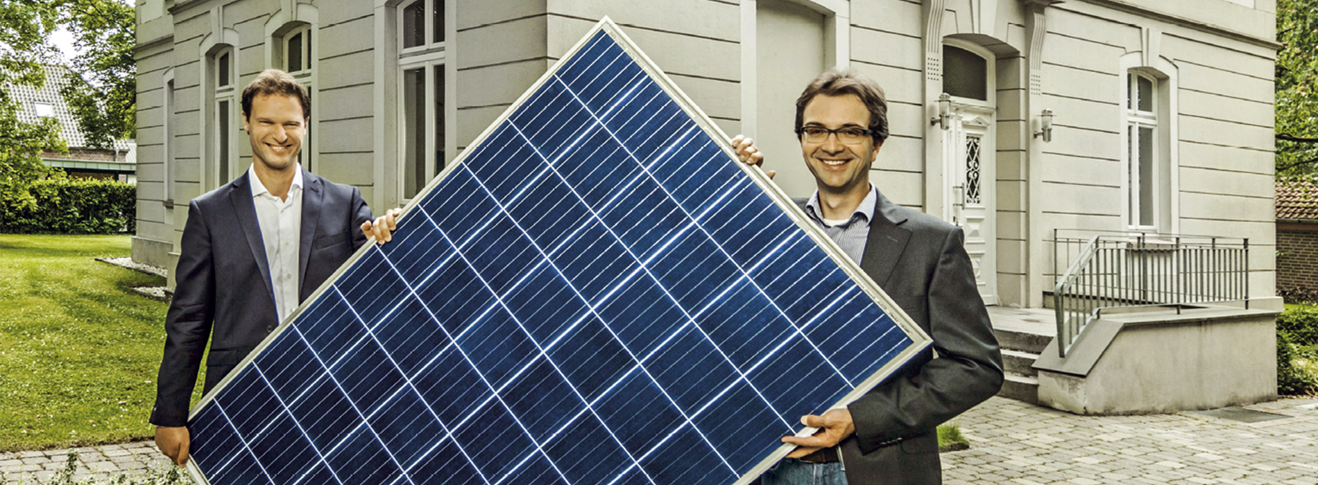 Eine Solaranlage zahlt sich quasi selbst ab. Dieses und weitere Argumente überzeugten auch das mittelständische Unternehmen HZB Technik GmbH. Gesucht wurde eine effiziente Anlage zur Reduzierung der Energiekosten sowie ein unkomplizierter Ablauf der Planungs- und Baumaßnahmen. Das Team von PV2 Energie lieferte die Lösung in nur zwei Monaten – von der Analyse bis zur installierten Anlage. Zuvor betrugen die Stromkosten des energieintensiven Gewerbes rund 125.000 Euro pro Jahr. Mit der Solaranlage produziert das Unternehmen einen Großteil seiner benötigten Energie selbst und spart damit rund 40 Prozent seiner jährlichen Energiekosten – nicht unerheblich! PV-Anlagen sind aktuell das Kerngeschäft des mittelständischen Unternehmens PV2 Energie. 2005 begannen die Freunde Chris Hannen und Phillip Küpper damit, erste Projekte im Bereich erneuerbare Energien zu realisieren. Bis Ende 2010 hatten sie bereits mehrere Solar- und Windkraftanlagen errichtet. 2011 gründeten die – mit damals 31 bzw. 30 Jahren noch jungen – Unternehmer die PV² Energie GmbH. Hannen war zuvor als Geschäftsführer für die französische Niederlassung des Klever Maschinenbauunternehmens MSK Verpackungssysteme GmbH verantwortlich. Küpper startete seine berufliche Laufbahn bei der RWE AG. Als u.a. kaufmännischer Projektleiter sammelte er Erfahrung insbesondere in der Projektentwicklung, Finanzierung und dem Verkauf von französischen und deutschen Solar- und Windprojekten an internationale Investoren. Heute gehören die beiden mit ihrem dynamischen Unternehmen zu den Marktführern in ihrer Branche am Niederrhein. Sie sind kompetenter Ansprechpartner für PV- und BHKW-Anlagen, die den Nutzern erhebliche Energie-Einsparungspotenziale bescheren. Auch das Unternehmen selbst betreibt diverse Anlagen und produziert damit genug saubere Energie, um gut 3.000 Haushalte zu versorgen. Im Vergleich zu Strom aus Braunkohle werden so etwa 17.000 Tonnen CO2 pro Jahr eingespart. Zu diesen Anlagen zählen auch zwei Blockheizkraftwerke, die Kunden, z.B. Gemüsebauern, mit günstiger Wärme versorgen. Der bei der Kraft-Wärme-Kopplung entstehende Strom wird ins Netz eingespeist.