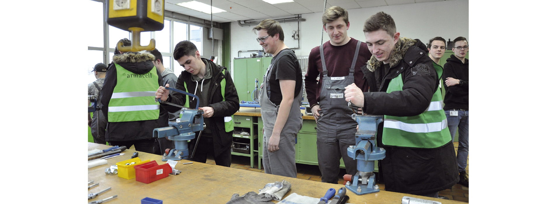Rund 20 Schüler haben am 19. Februar die Auftaktveranstaltung von „Schule – und dann?“ bei der Armacell GmbH besucht. Die Aktion zur Berufsorientierung stellt insgesamt 75 Tätigkeitsfelder in 14 münsteraner Betrieben vor. Mit dem Angebot wollen die Wirtschaftsförderung Münster GmbH (WFM) und Unternehmen in der Region Jugendliche ab der Klasse 9 bei der beruflichen Entscheidungsfindung unterstützen. Die Firmen aus Handel, Handwerk, Dienstleistung, Industrie und öffentlicher Hand stellten kaufmännische und gewerblich-technische Arbeitsgebiete sowie duale Studiengänge vor. „Wir stellen fest, dass es für Jugendliche wichtig ist, Berufsbilder kennen zu lernen. Andererseits ist es sehr schwierig, sich für einen passenden Beruf zu entscheiden“, sagt WFM-Geschäftsführer Dr. Thomas Robbers. Die Firmen sprechen sowohl Haupt-, Real- und Gesamtschüler als auch Berufskollegbesucher und Gymnasiasten an. „Wir haben den Bedarf an jungen, motivierten Menschen. Und wir möchten unseren potenziellen Auszubildenden von morgen so früh wie möglich zeigen, welche Chancen sie in unserem Unternehmen haben“, erklärte Armacell-Geschäftsführer Stefan Garmann in seiner Begrüßung. Das Unternehmen beschäftigt am Standort Münster 500 Mitarbeiter, 30 sind Auszubildende in zehn unterschiedlichen Berufsfeldern. Bei den Unternehmensbesuchen geben Mitarbeiter aus der Personalabteilung und Auszubildende Auskünfte zu den Berufsfeldern mit Einstiegsmöglichkeiten. Im Anschluss können die Gäste in Übungen ihr Talent erproben. Auch Eltern und Lehrer sind eingeladen, mit ihren Kindern und Schülern einen Teil der Ausbildungslandschaft vor Ort zu erkunden.