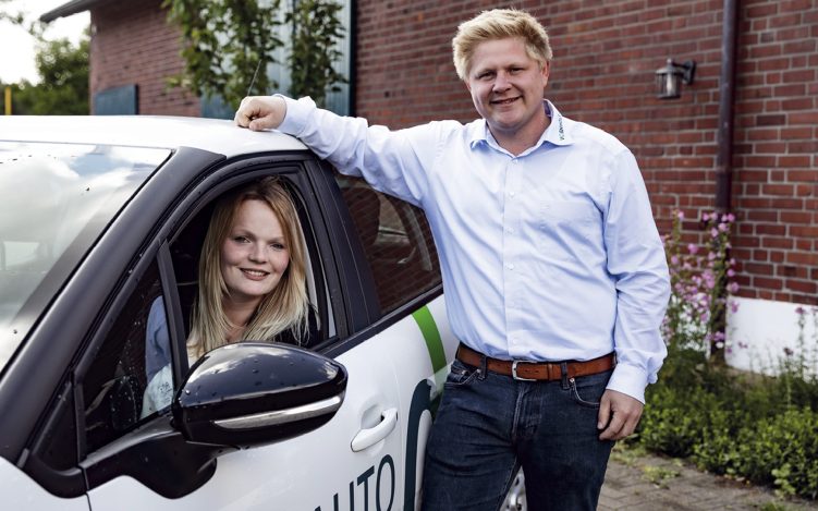 Das Azubi-Team Jana Kentrup und Jan Holling mit einem VORNHOLT Azubi-Auto (Foto: Patric Prager Fotografie)