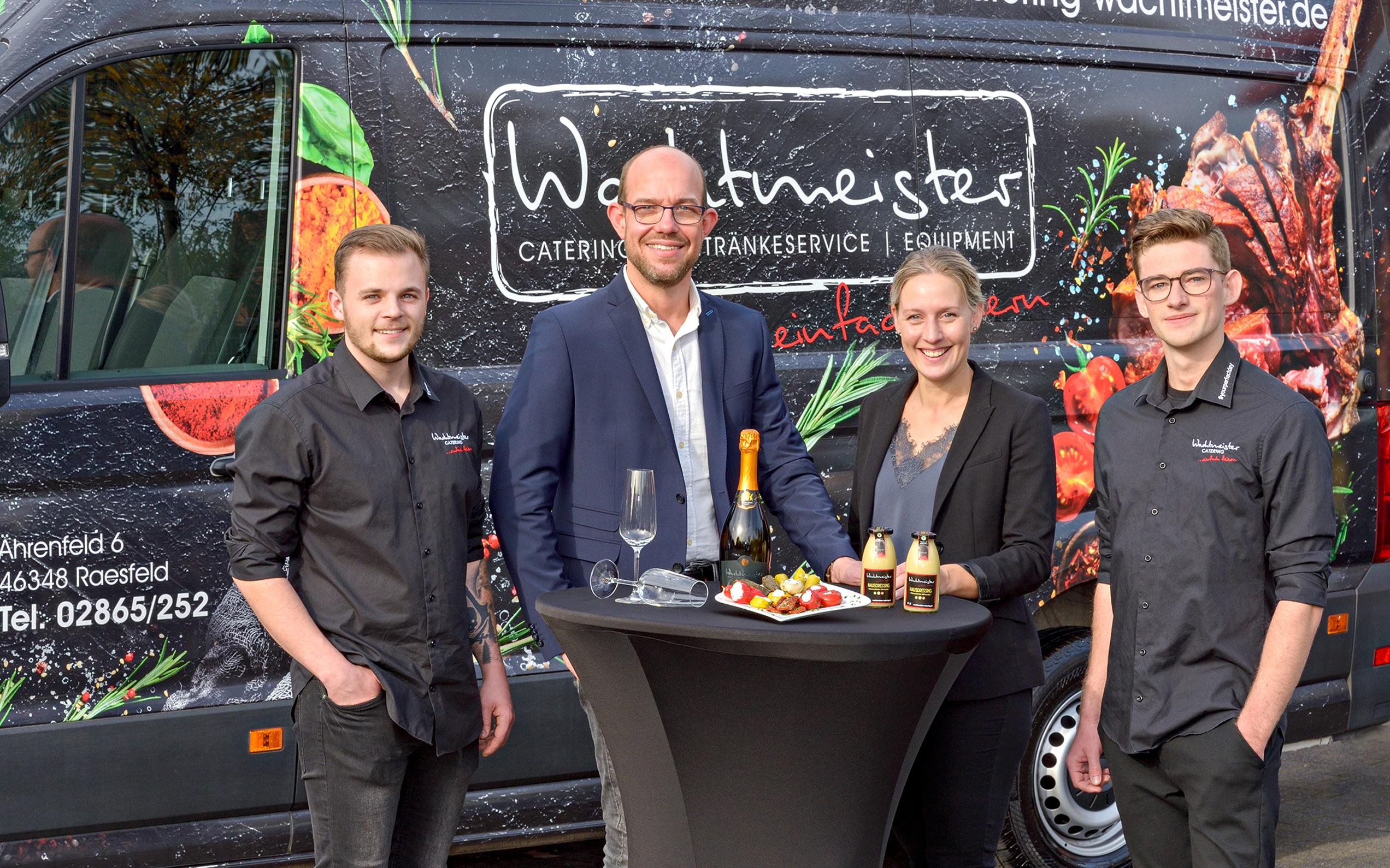 Im Umkreis von über 50 Kilometern um Borken sind Einsätze und Buchungen der Wachtmeister Catering bereits üblich. Mit der Eventagentur „Lieb & Wert“ soll der Umkreis nun noch erweitert werden. Schon jetzt setzt die Bleker-Gruppe mit ihren verschiedenen Standorten bei Veranstaltungen auf den Full Service des Raesfelder Dienstleisters. Neben Firmenevents richtet Wachtmeister Catering auch viele Hochzeiten aus, die mit bis zu 200 Gästen schon zu den etwas größeren Feierlichkeiten zählen. Bei seinem Catering-Service beschäftigt André Wachtmeister teilweise bis zu 80 Mitarbeiter, davon 14 festangestellte und zur „Prime Time“ bis zu 70 Aushilfen und Kellner.