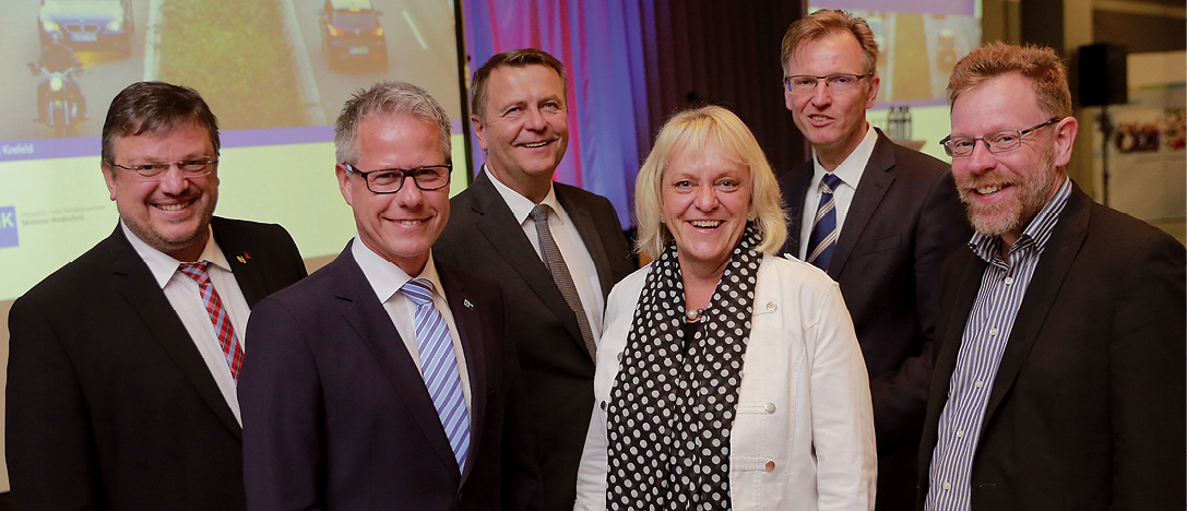 Mit dem aktuellen Bundesverkehrswegeplan hat die Bundesregierung nun die Weichen für den Infrastrukturausbau bis 2030 gestellt. Sind für NRW, für das Rheinland und den Niederrhein die richtigen Schwerpunkte gesetzt worden? Ist die Erreichbarkeit der Betriebe in Zukunft gesichert? Wie kann der Investitionsstau aufgelöst werden? Diese Fragen standen im Mittelpunkt des Kongresses zu Verkehr und Infrastruktur, zu dem die IHK Mittlerer Niederrhein gemeinsam mit dem Deutschen Gewerkschaftsbund Region Düsseldorf-Bergisch Land in den BayTreff in Krefeld eingeladen hatte. „Eine intakte und leistungsfähige Infrastruktur ist entscheidend für die Wettbewerbsfähigkeit der Unternehmen in unserer Region“, erklärte Jürgen Steinmetz, Hauptgeschäftsführer der IHK Mittlerer Niederrhein, zur Begrüßung. „Die Erreichbarkeit der Betriebe und die Anbindung an die niederländischen und belgischen Seehäfen müssen für die Zukunft gesichert werden.“ Steinmetz erinnerte daran, dass Experten von einem 40-prozentigen Zuwachs des Güterverkehrs im Rheinland bis 2030 ausgehen. Im Anschluss stellte Ministerialdirigent Dr. Gerhard Schulz, Leiter der Abteilung Grundsatzangelegenheiten des Bundesministeriums für Verkehr und digitale Infrastruktur (BMVI), den Bundesverkehrswegeplan vor. „Wir stellen 270 Milliarden Euro bis 2030 zur Verfügung, somit herrscht langfristig Planungssicherheit.“ 70 Prozent der Mittel sollen in den Erhalt, 30 Prozent in den Ausbau investiert werden.