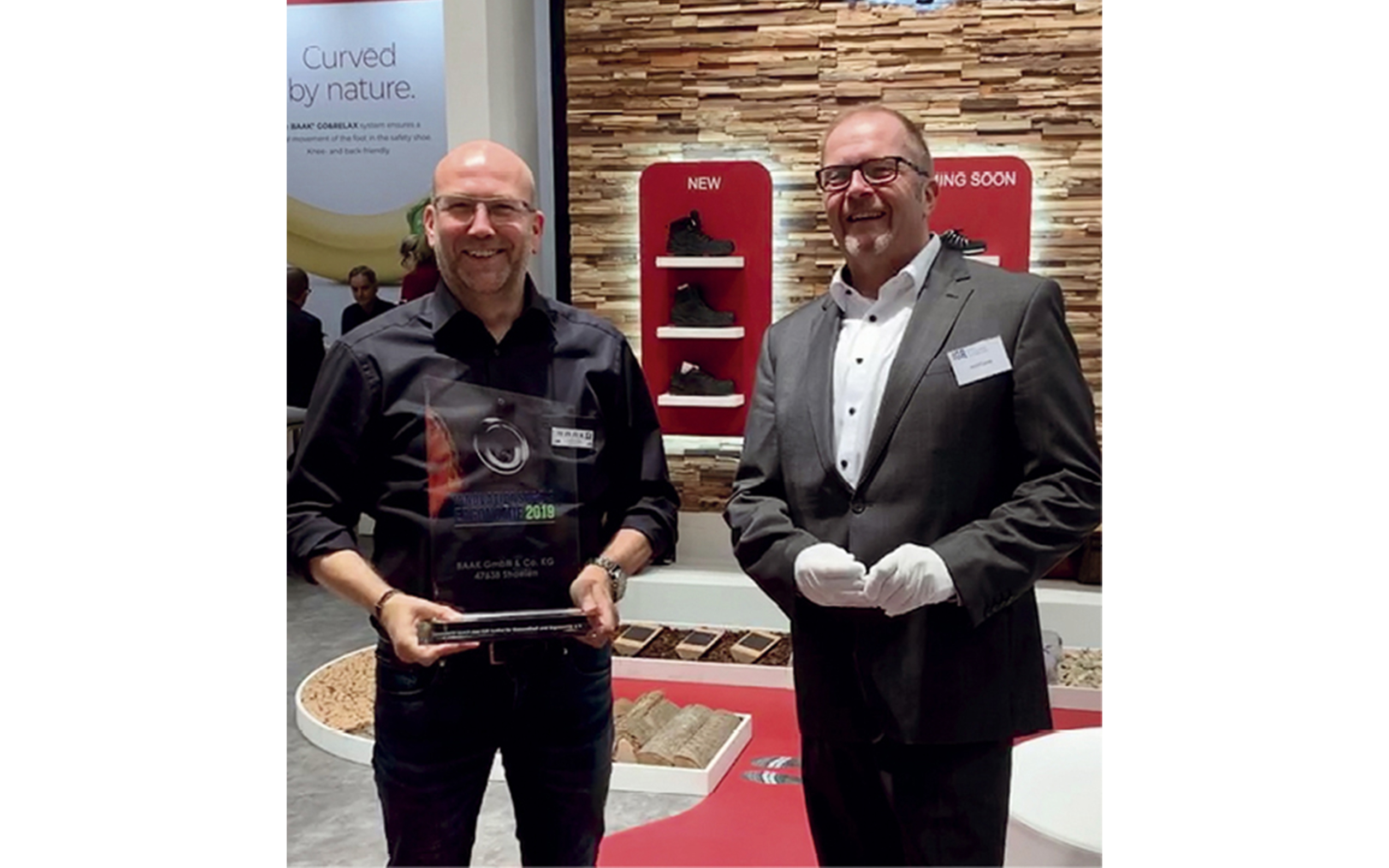 Der Sicherheitsschuhhersteller Baak aus Straelen hat Anfang November auf der A+A, der Leitmesse für sicheres und gesundes Arbeiten in Düsseldorf, für sein patentiertes Fußfunktionskonzept „Go&relax“ den Innovationspreis Ergonomie erhalten. Das IGR Institut für Gesundheit und Ergonomie aus Nürnberg zeichnet mit dem Preis Unternehmen aus, die sich laut Angaben des Instituts durch ihr Engagement für den arbeitenden Menschen in Form von ergonomischen Konzepte und Produkten hervortun. Das Konzept „Go&relax“ ist eine eigene Erfindung der Firma Baak, die die Anatomie und den natürlichen Bewegungsablauf des Fußes in Sicherheitsschuhen besser berücksichtigen soll. Ingo Grusa, der die Baak GmbH & Co. KG zusammen mit seiner Ehefrau Andrea Grusa leitet, verspricht sich viel von der Innovation: „Mit unserer nunmehr geschützten Technologie besetzen wir den Zukunftsmarkt Gesundheit mit einem Alleinstellungsmerkmal im Sicherheitsschuhbereich“. Vor kurzem hatte das Straelener Unternehmen schon das nächste Projekt angekündigt: Für 2020 ist mit niederrheinischen Handwerksbetrieben der Neubau eines kreativen Meetinghauses geplant. Darüber hinaus sammelt Baak Spenden, um 2021 den Bau einer Schule in Afrika zu ermöglichen.