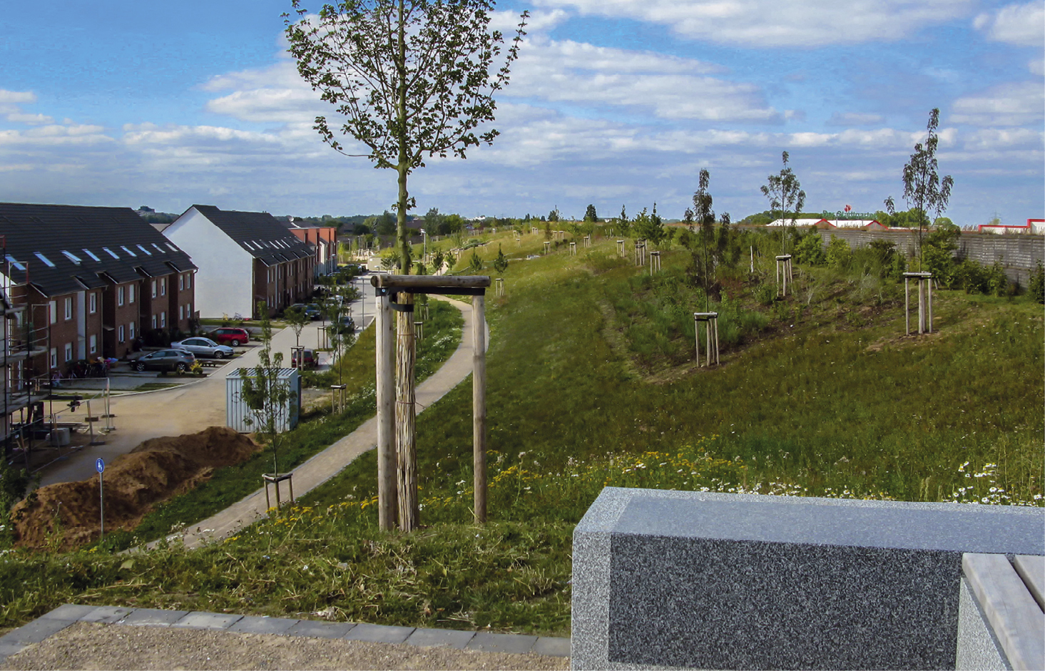 gestaltet mit speziellen Begrünungen wie zum Beispiel Einsaaten oder
