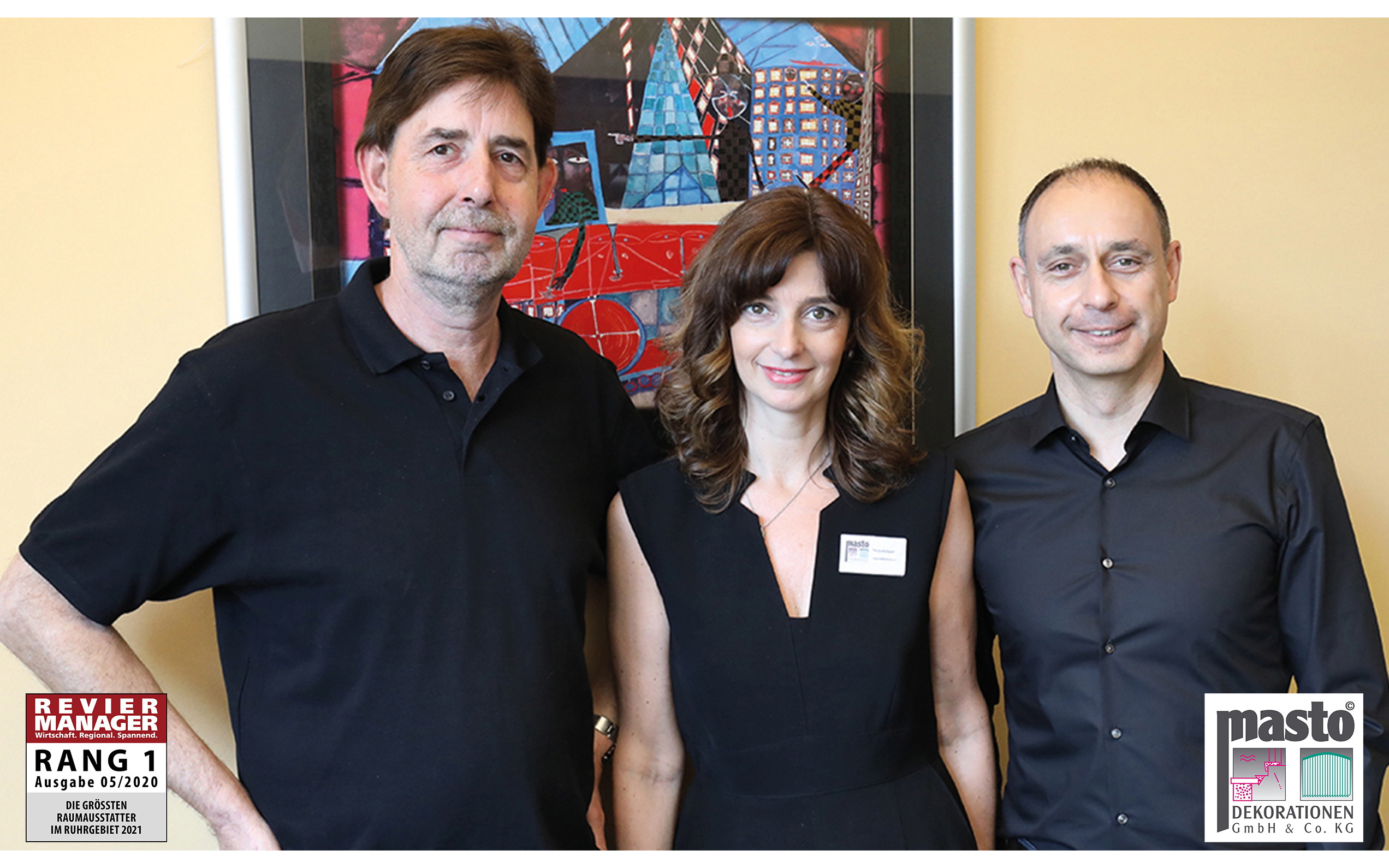 Universitätsklinikum, Hotel oder Textilverband: Der Raumausstatter MASTO DEKORATIONEN erfüllt die Wünsche verschiedener Kunden, national wie international. Gegründet hat das Unternehmen Margret Stoffel (ihre Anfangsbuchstaben des Vor- und Nachnamens ergeben zusammen MASTO) gemeinsam mit ihrem Sohn Reiner Stoffel 1983 in Essen. Mittlerweile hat Reiner Stoffel die technische Leitung übernommen und seine Geschwister Thorsten Stoffel und Tanja Alznauer zeichnen die kaufmännische Leitung verantwortlich. 44 Mitarbeiter stehen ihnen zur Seite, sie beraten die privaten und gewerblichen Kunden – angefangen bei der Planung über die Budgetierung bis hin zur Umsetzung.
