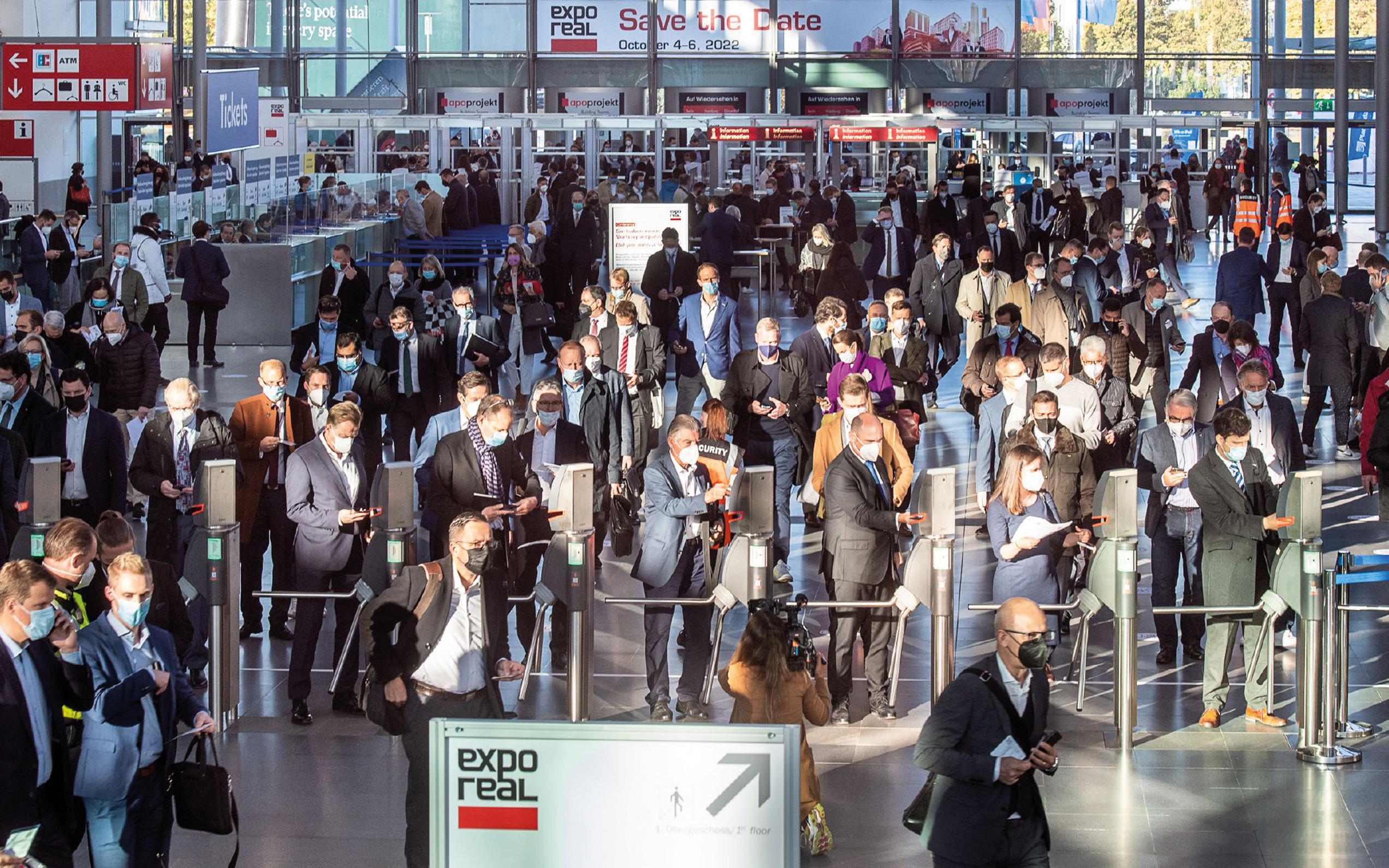 Besucher am Eingang West der EXPO REAL 2021 (© Messe München GmbH) | Karin Bünnagel