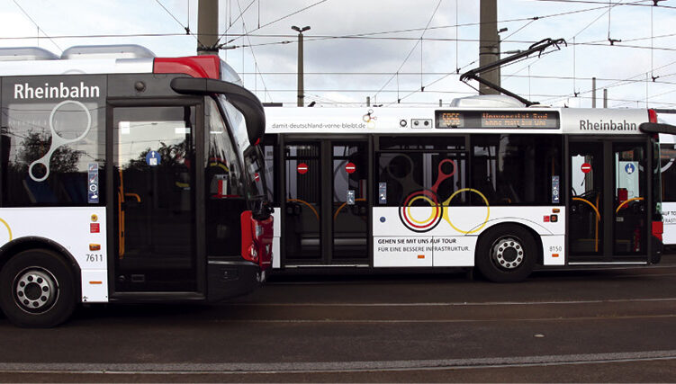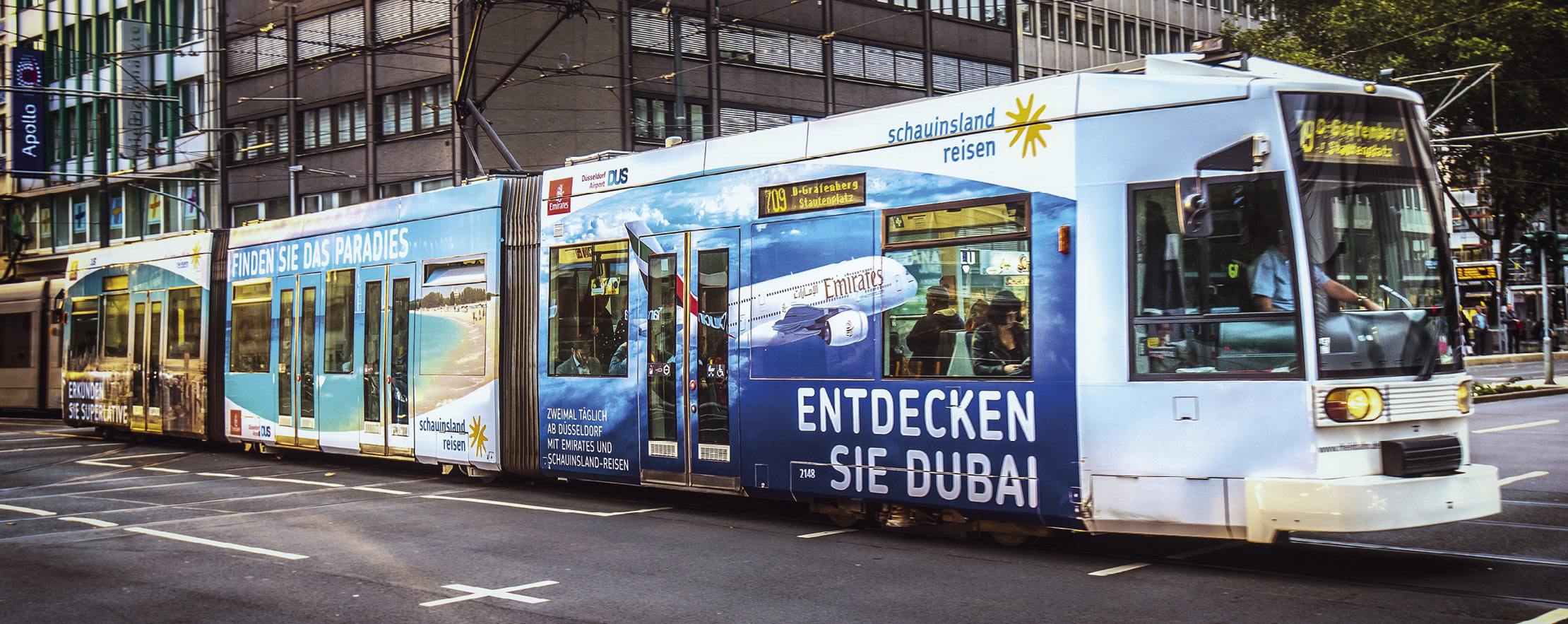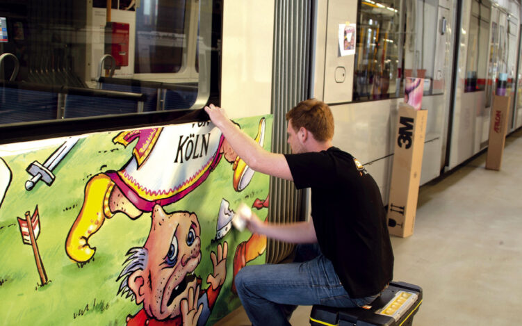 Spezialisiert hat sich die DRUCK_DAT GmbH auf den Bereich der „Verkehrsmittelwerbung“ und besetzt dort eine Nische im Markt. „Damit verfügen wir als Werbetechniker über einen USP, der uns zu einem gefragten Experten für viele Kunden und Partner macht“, erklärt Geschäftsführerin Tamara Janßen. „Wir bedienen die größten Vermarkter von Verkehrsmittelwerbung in Deutschland und setzen diverse Werbeformen für den Innen- und Außenbereich von öffentlichen Verkehrsmitteln um. Dabei statten wir jegliche Busse und Schienenfahrzeuge mit unterschiedlichsten Materialien, abgestimmt auf Laufzeit und Werbeart, aus. Man kann davon ausgehen, dass bei öffentlichen Verkehrsmitteln – egal wo in Deutschland, die im Innenbereich mit Werbung ausgestattet sind, fast immer unser Team die Finger im Spiel hat“, erläutert Simon Wenzel, kaufmännischer Leiter bei DRUCK_DAT. „Im Ruhrgebiet sowie im Raum Düsseldorf sind wir zudem ein gefragter Partner in Sachen Außenwerbung bei öffentlichen Verkehrsmitteln“, so Wenzel weiter. In beiden Fällen kümmert sich die DRUCK_DAT GmbH sowohl um die Produktion der Medien als auch die Montagearbeiten vor Ort.