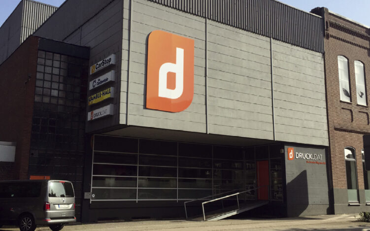 Das Team der DRUCK_DAT GmbH kümmert sich hauptsächlich um gewerbliche und Industriekunden und bietet seinen Kunden ein reichhaltiges Portfolio an Produkten aus dem Bereich des digitalen Großformatdrucks und der Werbetechnik an. Der Schwerpunkt liegt dabei auf der Herstellung und Verarbeitung von Klebefolien in jeglicher Form und Ausführung. Ein großer Teil des Dienstleistungsspektrums ist die Beschriftung von ganzen Fahrzeug-/Lkw-Flotten und öffentlichen Verkehrsmitteln wie Bus und Bahn. Zudem offerieren die Gocher ihren Kunden viele weitere Produkte wie Fassadenbeschriftungen, Werbebanner, Werbeschilder, Messe- und Displaysysteme oder auch die Erstellung ganzer Werbeanlagen. Auch Lösungen für digitale Medien, wie z.B. Websites, Online-Shops und Digital Signage, gehören dazu.