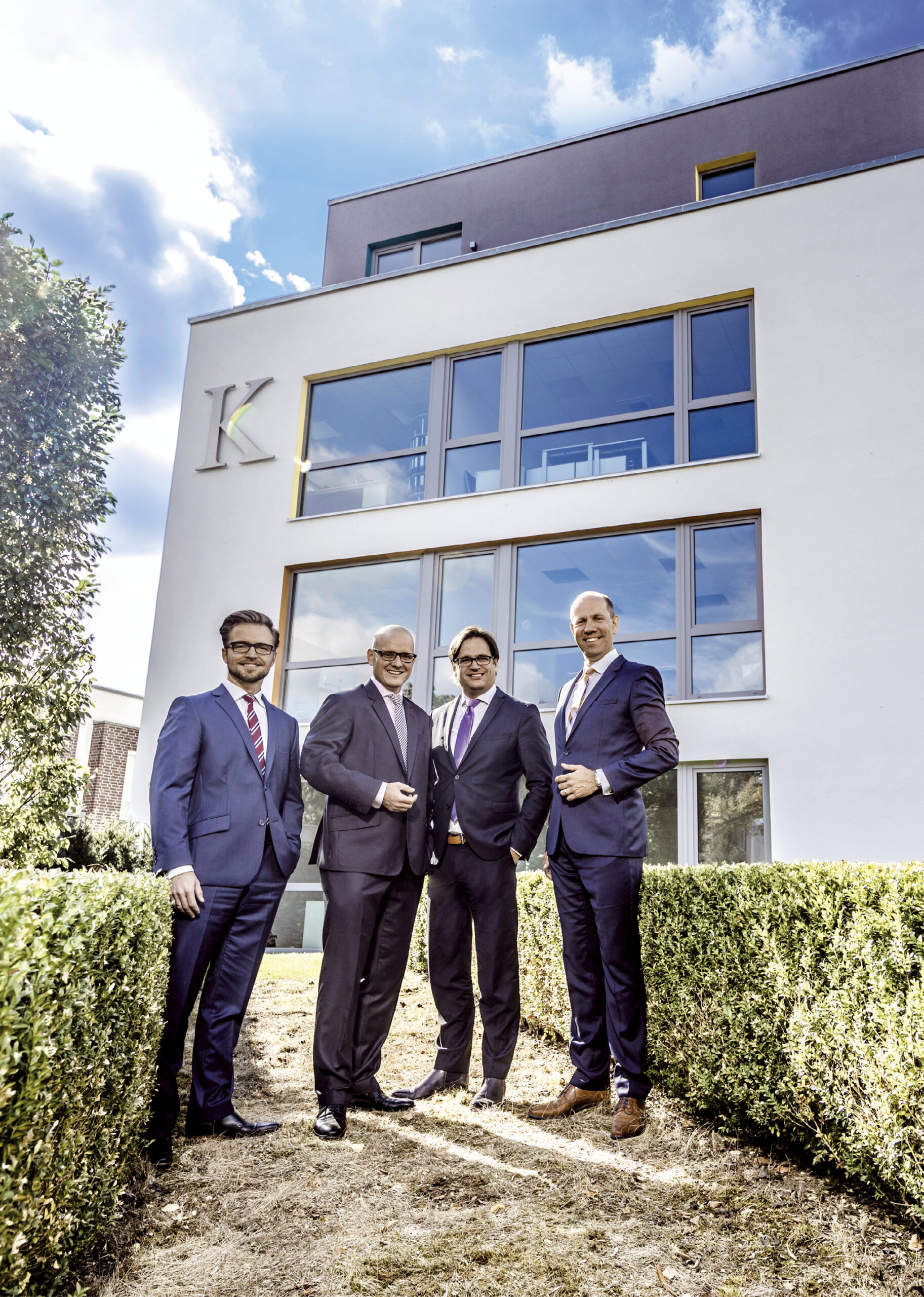 „Gemeinsam lässt sich mehr erreichen“, sagt Karsten Kalthoff voller Überzeugung und schließt die Glastür des Besprechungsraumes. Wie in den anderen Zimmern des Gebäudes ist auch hier noch der Geruch frischer Farbe wahrnehmbar; gleichzeitig sorgen modernes Mobiliar, tiefe Fensterfronten und dezente Dekorationselemente schon jetzt für eine angenehme Atmosphäre. Erst vor wenigen Tagen hat das Dinslakener Team der Kanzlei Kalthoff & Kollegen einen Neubau bezogen, der sich nur ein paar Schritte vom bisherigen Gesellschaftssitz entfernt befindet. „Nun steht ausreichend Platz zur Verfügung, um unseren Mandanten eine vollumfängliche Betreuung unter einem Dach anbieten zu können“, fährt der geschäftsführende Partner fort. Auf den vier Etagen sind schließlich Spezialisten verschiedener Professionen im Einsatz, die Klienten in den Bereichen Steuer-, Unternehmens- und Rechtsberatung zur Seite stehen. Den Grundstein für die Erfolgsgeschichte legte Karsten Kalthoff zunächst als Einzelkämpfer: 2004 machte sich der Steuerberater und geprüfte Bilanzbuchhalter (IHK) selbstständig; nur ein Jahr später übernahm er die Steuerberatungskanzlei von Diplom-Kaufmann Klaus Schmitz in Wesel am Rhein. „Da ich Dinslakener bin, habe ich 2011 im Nachbargebäude unseres Neubaus eine Etage gemietet und einen zweiten Standort eröffnet.“ 2013 folgte dann die Gründung einer dritten Niederlassung in Düsseldorf/Erkrath. Seither schreitet die Entwicklung der Gesellschaft rasant voran: „Unseren Weseler Standort haben wir 2014 von der Stadtmitte in einen verkehrsgünstig gelegenen Bürokomplex an der B58 verlegt, damit unsere Mandanten uns besser erreichen können“, sagt Diplom-Ökonom Denis Broll, der im Juli 2012 Gesellschafter bei Kalthoff & Kollegen wurde; in die Kanzlei trat er bereits drei Jahre zuvor als freier Mitarbeiter ein. „Wir kannten uns flüchtig, da wir zuvor für eine andere Kanzlei zusammengearbeitet hatten – ich war damals noch Praktikant und Karsten Kalthoff freier Mitarbeiter im Rahmen der Wirtschaftsprüfung.“ Schnell merken die beiden Steuerberater, dass sie auf der gleichen Wellenlänge liegen und sich bei der Kanzleiführung hervorragend ergänzen: Während der Gründer gerne sein Akquisitionstalent einsetzt, um neue Mandanten zu gewinnen, kümmert sich Denis Broll verstärkt um die Organisation im Hintergrund.
