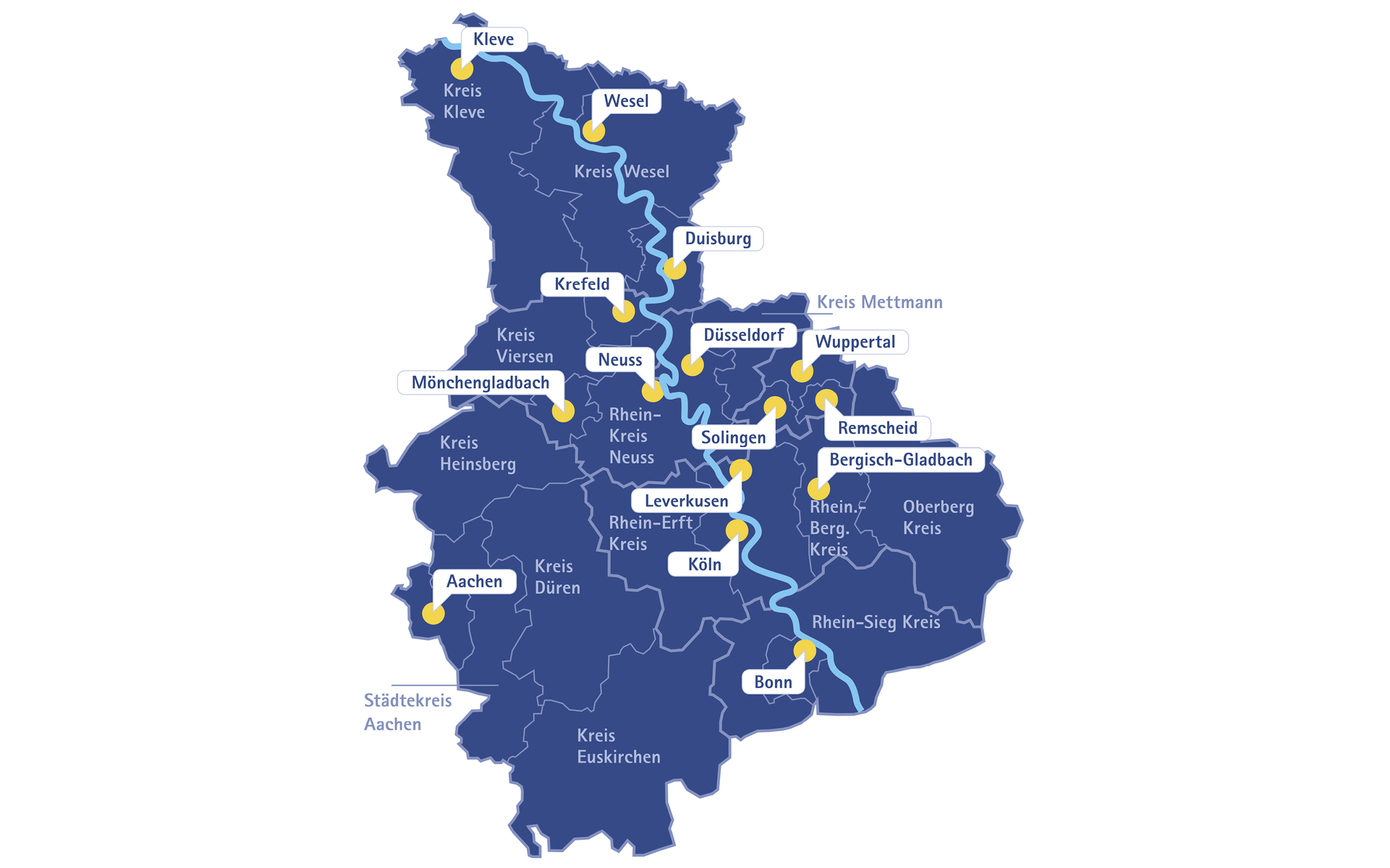 Wie stark die Region schon jetzt ist, verdeutlichen einige Zahlen: So erwirtschaftet das Rheinland ein Bruttoinlandsprodukt von mehr als 330 Milliarden Euro und somit circa die Hälfte des NRW-BIPs. Darüber hinaus ist es mit 8,6 Millionen Einwohnern die bevölkerungsreichste Metropolregion und mit 700 Einwohnern je Quadratkilometer auch eine der am dichtesten besiedelten in Deutschland. Experten rechnen hier bis zum Jahr 2025 sogar mit einem weiteren Bevölkerungswachstum.