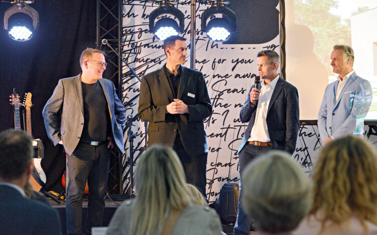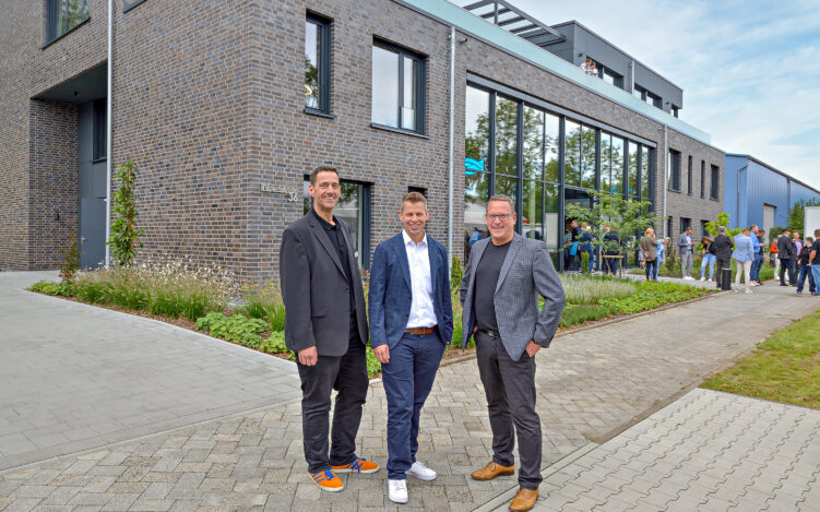 Die INperfektion-Gründer Carsten Finke (re.) und Ralf Aldenhoven (li.) freuen sich gemeinsam mit Gronau-Geschäftsführer Benjamin Gronau über den Neubau