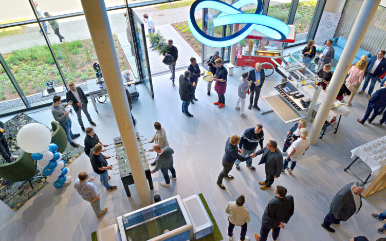 Einen komplexen Neubau sowohl innerhalb des ursprünglichen Zeitrahmens als auch innerhalb des vorgegebenen Kostenrahmens fertigzustellen, ist in der heutigen Zeit wahrlich keine Alltäglichkeit. Ein Beispiel, dass es möglich ist, hat kürzlich die Gronau GmbH & Co. KG geliefert. Für einen Nachbarn, die INperfektion GmbH, hat Gronau im sogenannten „Wegberg-Oval“, dem Gewerbegebiet der Stadt, zwischen April 2022 und Juni 2023 eine neue Zentrale errichtet. „Damit lagen wir – von der ersten Skizze bis zur schlüsselfertigen Übergabe – genau im Zeitplan“, erklärte Benjamin Gronau am Rande der offiziellen Eröffnung. Bei der Feier am 22. September zeigten sich die Gäste vor allem vom Showroom für Roboter-Applikationen und weitere Technologie-Highlights beeindruckt. Er bildet das Herz des Gebäudes und ist sowohl von außen als auch von innen einsehbar. Viel Glas und wenig Mauern bedeuten Transparenz.