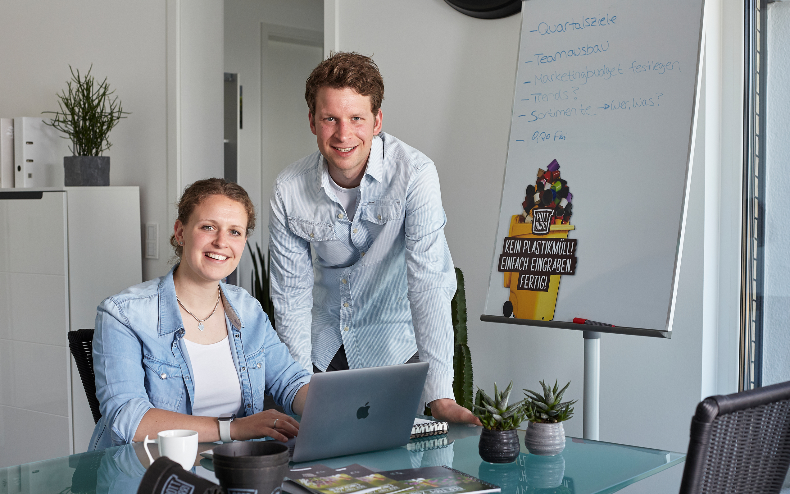 Wer gerne Pflanzen heranzüchtet oder gekaufte zuhause eingraben will, weiß: Dafür ist ein Topf nötig, der meist aus Plastik besteht und aus dem die Pflanze zunächst ausgetopft werden muss. Das Gründerduo Alexander und Antonia Cox aus Straelen suchte nach einer Lösung, diesen Plastikmüll in der Pflanzenwelt einzusparen. „Wir verfolgen schon lange die Vision, die Pflanzenwelt nachhaltiger zu gestalten. Schon Opa hat vor 30 Jahren versucht, eine Alternative zu Einweg-Plastiktöpfen zu finden“, sagen die Gründer. So sei die Idee für „Pottburri“ entstanden. In der Vox-Gründer-Show „Die Höhle der Löwen“, die am 26. April ausgestrahlt wurde, nahmen die Gründer das Angebot von Investor Ralf Dümmel an. Er übernimmt 20 Prozent der Firmenanteile gegen eine Zahlung von 150.000 Euro. Der Pflanzentopf besteht vor allem aus Sonnenblumenschalen, einem Abfallprodukt der Lebensmittelindustrie, die sich dank Mikroorganismen in der Erde von allein zersetzen. Daher ist der Topf unter natürlich gegebenen Umständen kompostierbar. Der nachhaltige Blumentopf wird mit der Pflanze zusammen eingegraben und zersetzt sich innerhalb von zwölf Monaten. Der Pottburri-Werkstoff „Sun-circle“, entwickelt vom Innovationspartner „Golden compound“, zersetzt sich durch die Mikroorganismen vollständig zu Biomasse und Dünger. Beim Pflanzen mit „Pottburri“ ist daher kein Austopfen mehr nötig. Kunden können den Pottburri, je nach Saison und Vorliebe, auch mit einer Pflanze zusammen kaufen. Das Sortiment im Online-Shop von „Pottburri“ reicht von Lavendel über Zauberglöckchen und Sonnenblumen bis hin zu Kräuter- und Gemüsesorten für den heimischen Garten. Auch im stationären Handel, z. B. bei Blume 2000, Obi, Bauhaus, Kaufland und Real, sind die Produkte der Gründer vom Niederrhein erhältlich.