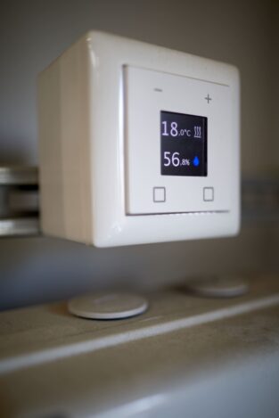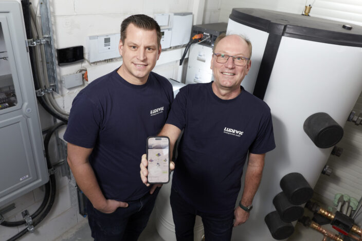 „Als unser neues Gebäude im Herbst 2020 errichtet wurde, waren unsere hohen energetischen Standards noch ungewöhnlich“, erinnert sich Sven Kollbach, einer der beiden Geschäftsführer. „Heute ist das fast normal. Wir haben das Gebäude von einem mittelständischen Hallenbauer hier aus der Region, der Firma Krings + Sieger, errichten lassen, die bis dahin selbst noch nichts Vergleichbares gebaut hatte.“ Das neue Firmengebäude der Ludewig GmbH hat einen KfW-40-Standard. Das gesamte Gebäude ist mit Fußbodenheizung und einer modernen Klimaanlage ausgestattet, die mit Hilfe von drei Doppelwärmepumpen betrieben wird. Sowohl Wärme als auch Strom werden zu 100 Prozent mit Sonnenenergie betrieben. Eine Gasheizung gibt es nicht. Somit ist die gesamte Produktion der Ludewig GmbH klimaneutral. „Wenn bei uns die Stromzufuhr ausfällt, produzieren wir weiter. Wir haben gute Speicherbatterien“, erklärt Sven Kollbach stolz. „Unsere 120 KW Photovoltaikanlage auf dem Dach füllt die Strom- und Wärmespeicher, sodass unser Gebäude auch nachts oder an sonnenlosen Tagen komplett versorgt ist.“ Die Produktionshalle wird in der Regel auf 18 Grad geheizt. Im Laufe des Tages erwärmt sich der Raum durch die Abwärme von Maschinen und Menschen um ein bis zwei Grad. Die Abluft des Druckluft-Kompressors wird im Winter zum Wärmen in die Halle geleitet, im Sommer aus der Halle herausgeleitet. Zusätzlich gibt es mehrere Ladestationen für E-Bikes und E-Autos von Mitarbeitern und Kunden.