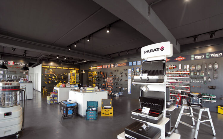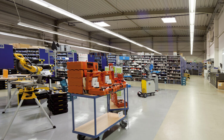 Auch in Sachen Standort gibt es Neuigkeiten in Neuss. Der Werkzeughändler hat in seine Gebäude investiert – und zwar sowohl in Form von Geld als auch in Form eigener Arbeitskraft. „Es liegt nahe, dass ein auf Werkzeug spezialisiertes Unternehmen beim Standortumbau selbst mit Hand anlegt“, sagt Sven Mager. „Dass wir es aber letztlich geschafft haben, 75 Prozent der Aufgaben in Eigenregie und während der Arbeitszeit zu stemmen, hätten wir am Anfang nicht gedacht“, sagt Sven Mager. Im Rahmen einer grundlegenden Umgestaltung und Erneuerung investierte das Unternehmen einen höheren fünfstelligen Betrag. „Fast alle haben mit angepackt, vom Azubi bis zum Chef“, fasst Prokurist Michael Sauer den Einsatz im vergangenen Jahr zusammen.