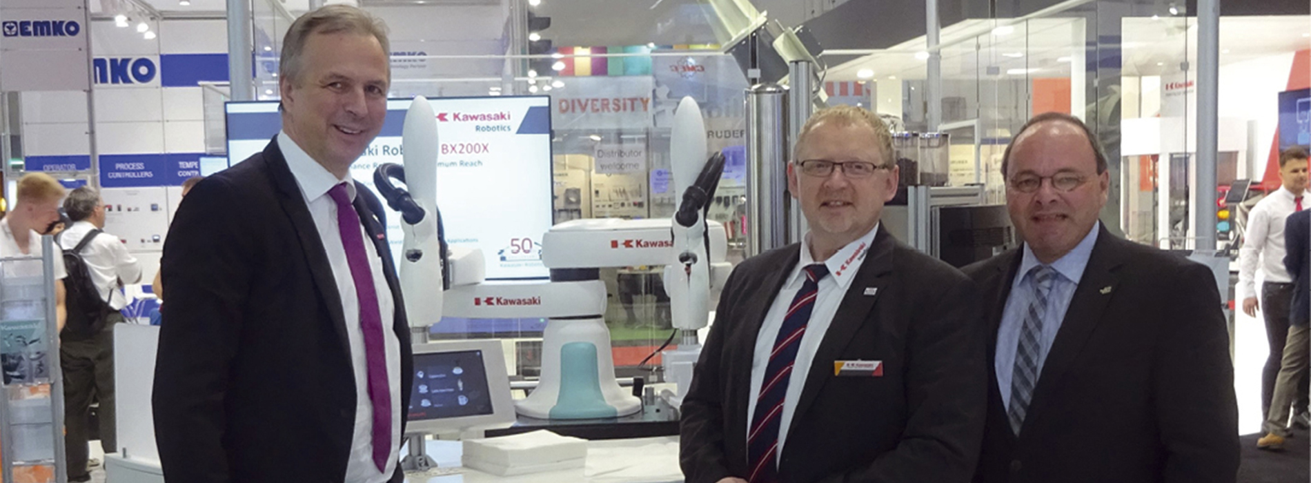 Zu dem Schluss, dass zahlreiche Unternehmen aus dem Rhein-Kreis Neuss ganz weit vorn liegen, wenn es um die neuesten Trends der Digitalisierung in der Industrie geht, kamen Kreisdirektor Dirk Brügge und Robert Abts, Geschäftsführer der Wirtschaftsförderungsgesellschaft (WFG) Rhein-Kreis Neuss, nach ihrem Besuch der Hannover Messe Ende April. Auf ihrem Programm standen u.a. Gespräche bei der Kawasaki Robotics GmbH aus Neuss. Mit General Manager Carsten Stumpf und seinem Mitarbeiter Mark Kluge erörterten Brügge und Abts die gemeinsamen Möglichkeiten, insbesondere den Mittelstand im Kreis noch stärker für die Chancen der Automatisierung zu sensibilisieren. Kawasaki Robotics ist bereits seit einigen Jahren Partner der Wirtschaftsförderung des Kreises, u.a. im Projekt „Zukunft durch Innovation“, bei dem es darum geht, junge Menschen für technische Berufe und speziell für die Berufe in der Automation zu begeistern. Von den auf der Hannover Messe vertretenen Unternehmen besuchten Brügge und Abts auch den Stand der Mitsuboshi MBL Antriebstechnik Deutschland GmbH aus Neuss, wo sie der neue Geschäftsführer Katsumi Nagata begrüßte. Ihre Gesprächspartner waren darüber hinaus Dirk Jürgeleit, Geschäftsführer der Gifas Electric GmbH aus Neuss, und Nicola Hardege, Marketing- und Kommunikationsmanagerin bei der Parker Hannifin GmbH aus Kaarst. Dabei ging es jeweils um weitere Ansätze einer Zusammenarbeit beim Thema Digitalisierung und die Unterstützung durch die Wirtschaftsförderung. Die Hannover Messe hat an fünf Tagen 210.000 Besuchern angelockt, davon mehr als 70.000 aus dem Ausland. Die meisten Besucher davon kamen aus China, den Niederlanden, Polen und den USA. Im Mittelpunkt stand die Industrie 4.0. Alle an der Digitalisierung beteiligten Branchen zeigten Lösungen für die Frage „Wie mache ich mein Unternehmen fit für die digitale Zukunft?“.