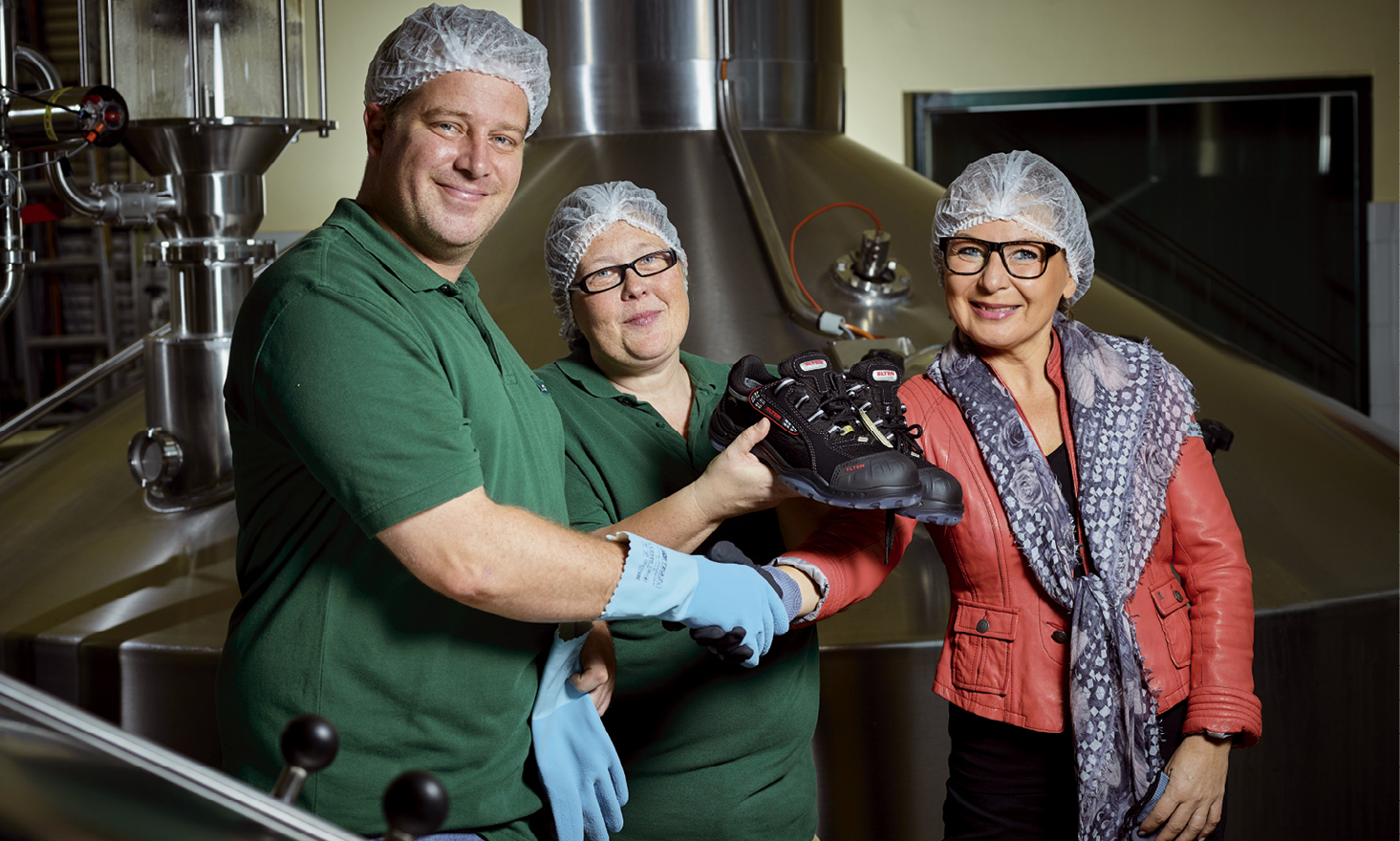 Das PSA-Konzept beinhaltet für die Bolten-Brauerei auch die Erweiterung um ein Hygiene- und ein Hautschutzkonzept. Reinigen, Desinfektion und Pflege für Braumeister und Co. Aber nicht nur Hände müssen bei der Arbeit geschützt werden. Auch für Füße ist Sicherheit und Komfort geboten. „Bei Arbeitsschuhen ist es wichtig, dass diese individuell an persönliche Bedürfnisse der Mitarbeiter angepasst werden“, weiß Claßen. So mussten für über 50 Mitarbeiter passende Arbeitsschuhe ermittelt werden. „Wir haben dafür u.a. die Füße jeder Mitarbeiterin und jedes Mitarbeiters vermessen lassen.“