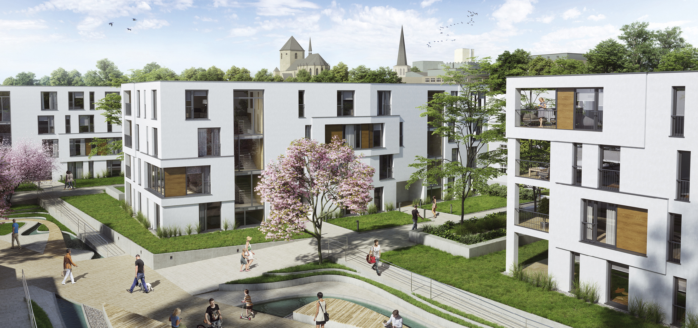 Von kompakten Zwei-Zimmer-Apartments über großzügige Penthäuser bis hin zu Gewerbeflächen: Unter den Dächern der Roermonder Höfe in Mönchengladbach finden sich verschiedene Lebens- und Arbeitswelten. Im Frühjahr dieses Jahres wurde der erste Spatenstich vollzogen, die Fertigstellung der sieben frei stehenden Gebäude, die das Ensemble der Roermonder Höfe bilden, ist Anfang 2018 vorgesehen. Auf insgesamt 15.000 Quadratmetern entstehen zwischen Fliethstraße und Lüpertzender Straße 130 Wohnungen, 7.300 Quadratmeter sind für Büro- und Gewerbeflächen vorgesehen. Das Konzept importiert eine niederländische Städtebau-Philosophie ins Gladbachtal, die Wohnen und Arbeiten nicht von der Öffentlichkeit abschottet, sondern das Leben in das Quartier hineinholen will. Der Name „Roermonder Höfe“ ist eine spezifische Referenz an die niederländische Partnerstadt Mönchengladbachs. Verantwortlich für den Bau ist das Architekturbüro Dr. Schrammen Architekten BDA mit Stammsitz in Mönchengladbach. Gegründet hat Dr.-Ing. Architekt Burkhard Schrammen das Architekturbüro im Jahr 1988 in Mönchengladbach. Seitdem ist das Büro beständig gewachsen und beschäftigt heute rund 45 Mitarbeiter. Seit 2010 ist es mit einer Niederlassung in Düsseldorf vertreten. Der Wirkungskreis konzentriert sich auf das Rhein-Ruhr-Gebiet, aber auch überregional und international ist das Büro aktiv und bekannt. Schwerpunkt der Architekturleistungen liegt auf dem Wohnungsbau, dicht gefolgt von Gewerbe- und Bürohausbau. Auftraggeber sind private, öffentliche und Unternehmensbauherrn. Auch viele Auszeichnungen und Preise sowie Teilnahmen an Architekturwettbewerben untermauern den hohen Qualitätsanspruch des Büros. „Architektur ist für mich die stetig neue Herausforderung, Räume im Spannungsfeld zwischen Zweck, Individualität und vielschichtigem Kontext zu gestalten“, beschreibt Schrammen. „Der Zweck, zu dem ein Gebäude geschaffen werden soll, gibt dem Architekten die elementaren Gesetzmäßigkeiten und Regeln an die Hand“, konkretisiert er. „Dennoch: Sie bilden lediglich den Startpunkt eines langen Weges, der über die schiere Nützlichkeit zur funktionalen Intelligenz führen soll.“ Ein Gebäude ist für Schrammen eine gebaute Persönlichkeit, das ästhetische Statement des Bauherrn, das über Jahrzehnte sichtbar bleibt. Genauso wie ein Gebäude nie isoliert betrachtet werden kann, sondern immer im räumlichen und zeitlichen Kontext steht, hat auch Gestaltung ihre Bezugsrahmen: der Stand von Wissenschaft und Technik, die Verantwortung vor Gesellschaft und Umwelt, der Respekt vor Nutzern und Nachbarschaft, die Würdigung von Kultur und Geschichte, der Mut zur Innovation, der Wille zur ökonomischen Disziplin. „Aus diesem sich täglich ändernden Spannungsfeld schöpfen meine Mitarbeiter und ich seit 28 Jahren unsere kreative Energie“, sagt der Architekt. „Doch wie immer wir uns entscheiden: Am Ende bauen wir für Menschen. Sie sind der Maßstab unseres Denkens und Handelns.“