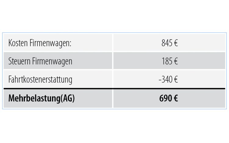 Verglichen mit einer Fahrtkostenerstattung ergibt sich aus Sicht des Arbeitgebers