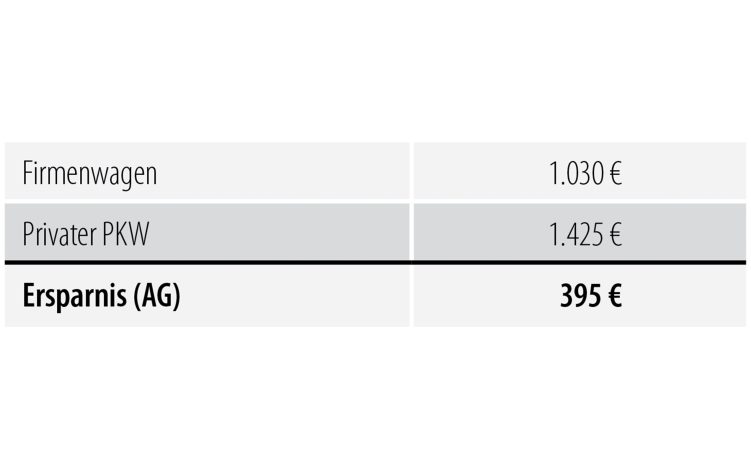 Das bedeutet: Wenn der Arbeitgeber den Wagen least, bezahlt er rund 845 € monatlich aus unversteuertem Einkommen.