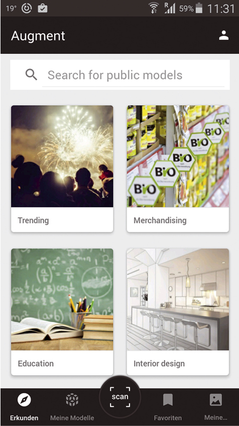 Augmented Reality ist eine der innovativsten Technologien unserer Zeit. Sie ist die Verschmelzung von virtuellen Objekten und Informationen mit der Realität und kann in fast allen gängigen Brachen oder Teilen der Wertschöpfungskette genutzt werden. Gut, dass Sie mit Augment nun auch über eine mobile App verfügen, die es Ihnen und Ihren Kunden ermöglicht, 3-D-Modelle in Augmented Reality zu sehen, während sie in Echtzeit in die richtige Größe und Umgebung eingebettet werden. Augment kann dabei in der kostenlosen Version mit diversen vorhandenen Modellen genutzt werden und eignet sich sowohl für die Büroeinrichtung als auch den nächsten Point of Sale im Store. Kombiniert mit den kostenpflichtigen Softwareabonnements, lässt sich die App auch für Messeauftritte oder sogar zur Darstellung komplexer Quartiersarchitektur nutzen. Oder fügen Sie doch einfach Ihre eigenen 3-D-Modelle und Tracker auf http://augmentedev.com hinzu. Fazit: ein mobiles Werkzeug für Augmented Reality. Kostenlos erhältlich für Android und iOS.