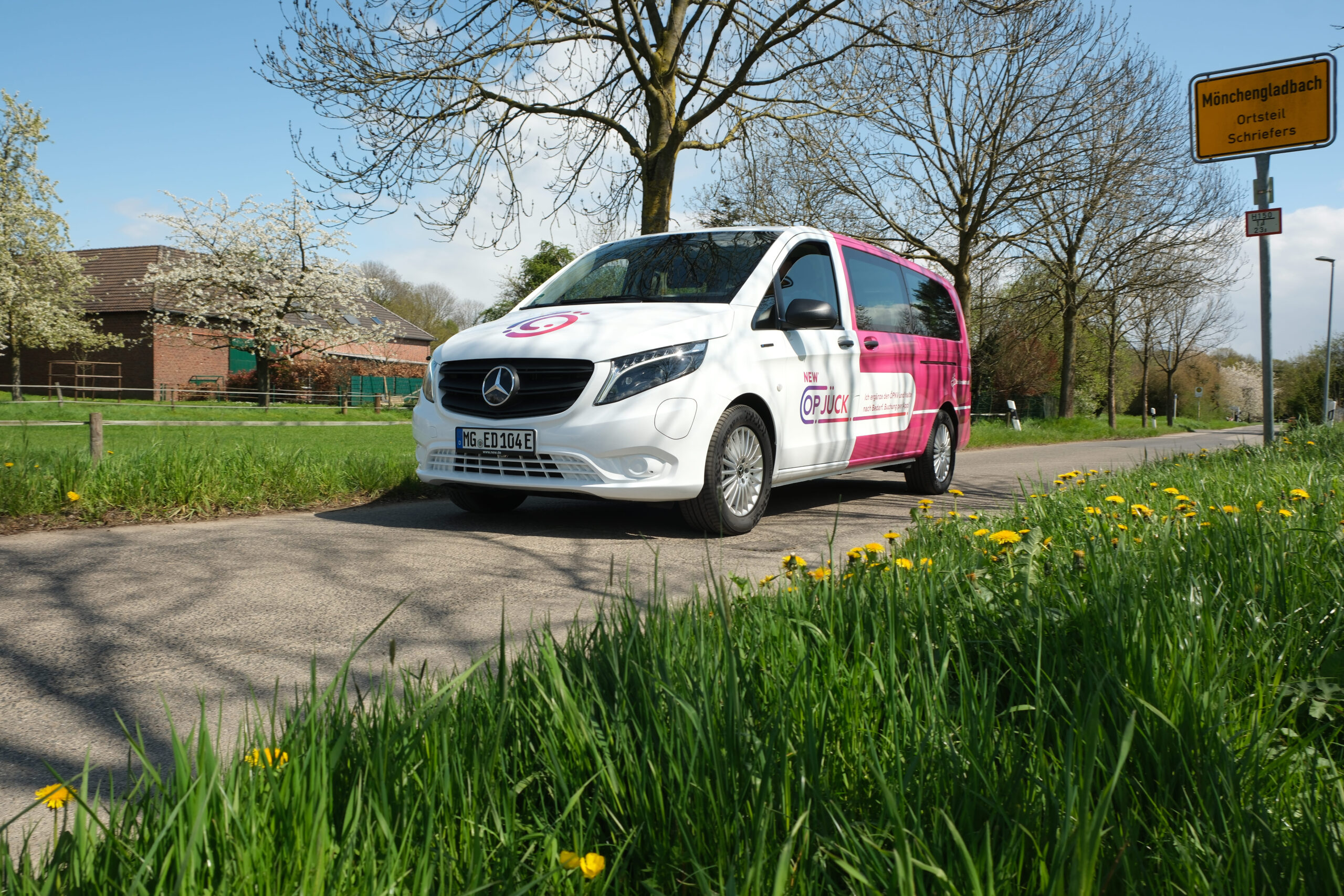 Mit dem „NEW Op Jück On-Demand-Verkehr“ bietet die NEW für drei ländlich geprägte Ortsteile der Stadt Mönchengladbach Mobilität auf Abruf. NEW Op Jück funktioniert 100 % digital, elektrisch und auf Abruf. Das Angebot ist einfach zu bedienen, flexibel und barrierefrei. Und so geht’s: Per App können die Kund:innen ihre Fahrt bequem und individuell buchen. Die vollelektrisch betriebenen Op Jück-Kleinbusse bringen sie dann innerhalb des Betriebsgebietes von einem gewünschten Punkt aus direkt zu ihrem Ziel. Unterwegs können noch weitere Fahrgäste eingesammelt werden. So wird die Fahrt umweltfreundlicher und für die weiteren Fahrgäste eines Buchungsvorgangs günstiger. In der App kann live mitverfolgt werden, wo sich das Fahrzeug gerade befindet und wo die nächste „virtuelle Haltestelle“ steht, die meist nur wenige Meter vom angegebenen Ziel entfernt ist. Die Betriebszeiten des Angebots sind montags bis freitags von 9 bis 18 Uhr. Der Fahrpreis ist der On-Demand-Tarif des Verkehrsverbunds-Rhein-Ruhr. VRR-Abonnent:innen erhalten attraktive Rabatte auf den Tarif. Abgerechnet wird direkt in der App.