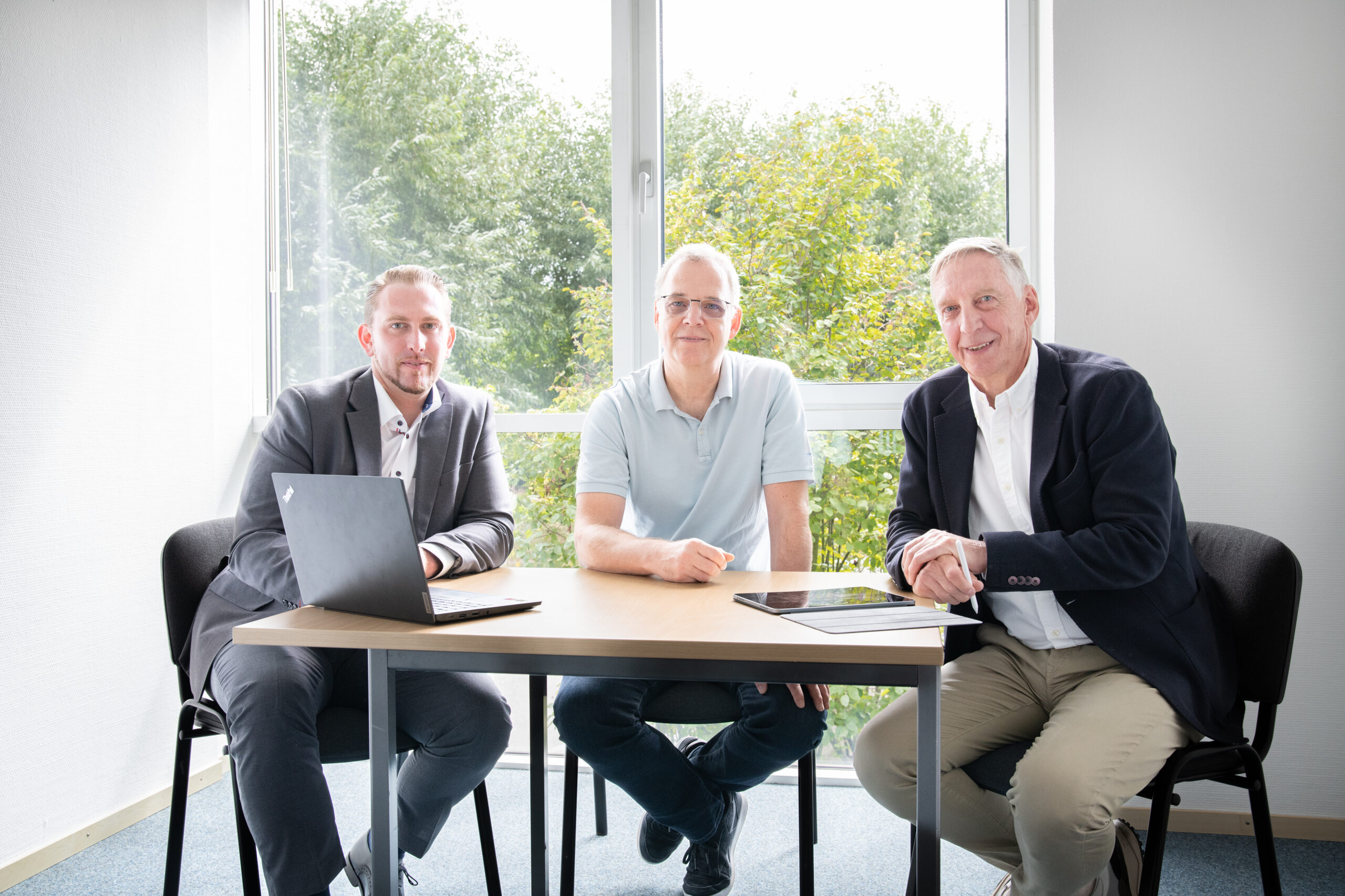 Produktmanager Sven Deege mit den beiden Geschäftsführern Peter Maldaner und Walter Maiwald (v.l.) (© Caroline Schlüter)